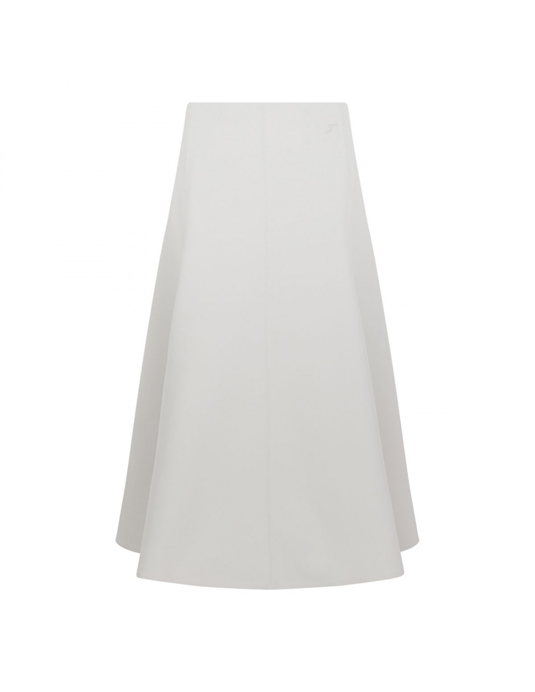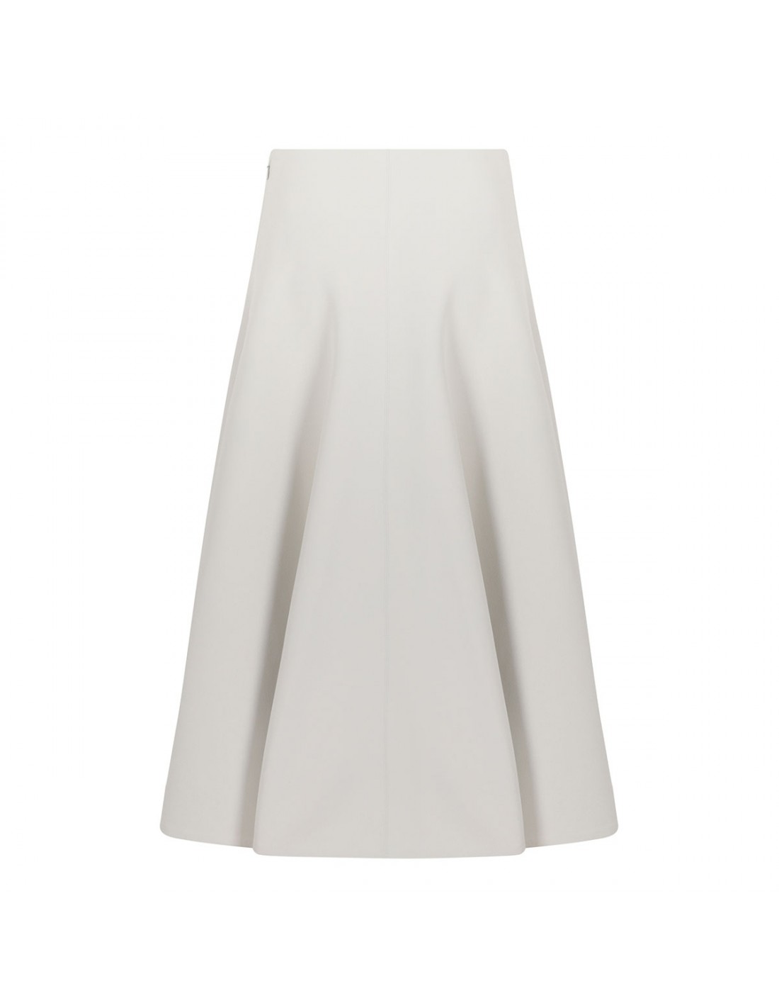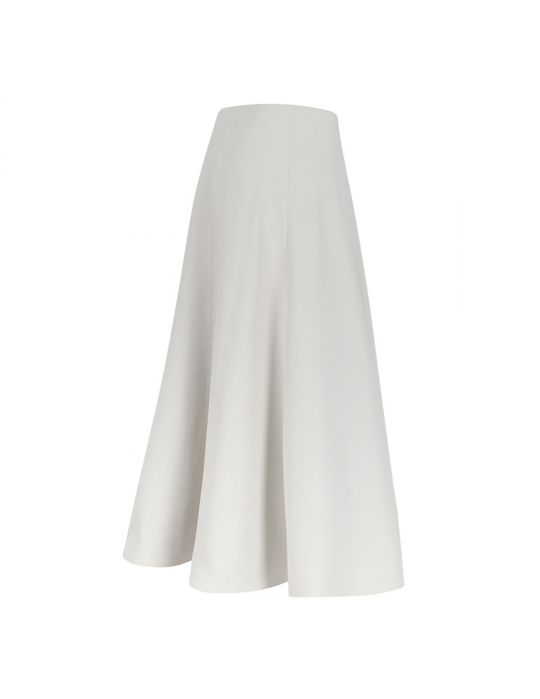 Off white compact viscose blend The Triangle godet skirt from Jacquemus featuring high-rise, contrast stitching, zip fastening along side, ankle length, flared hem.