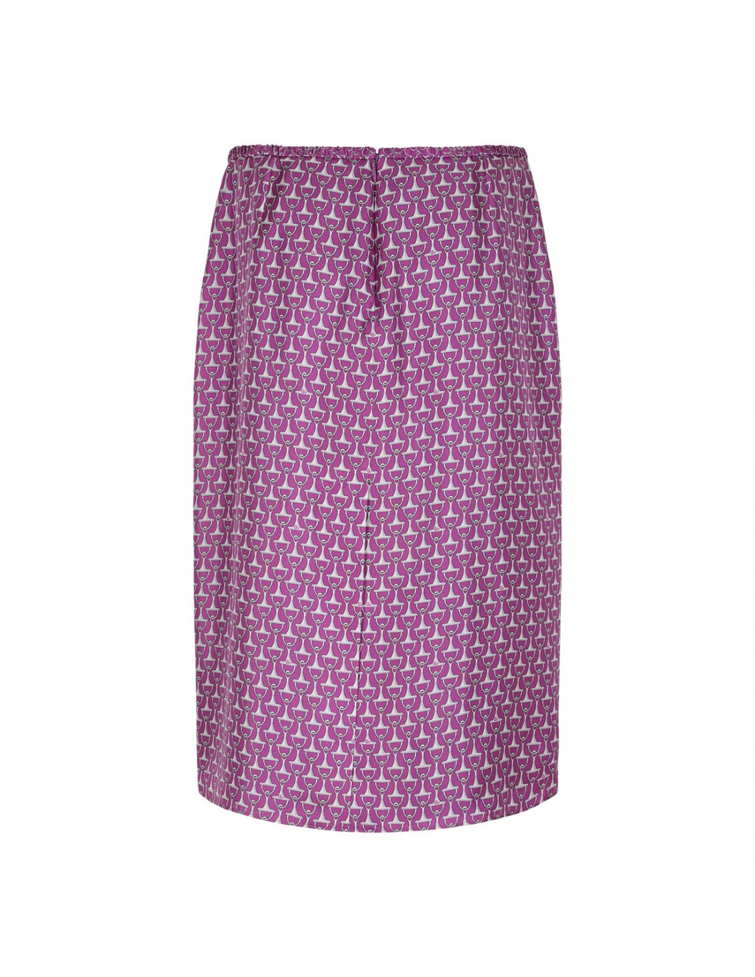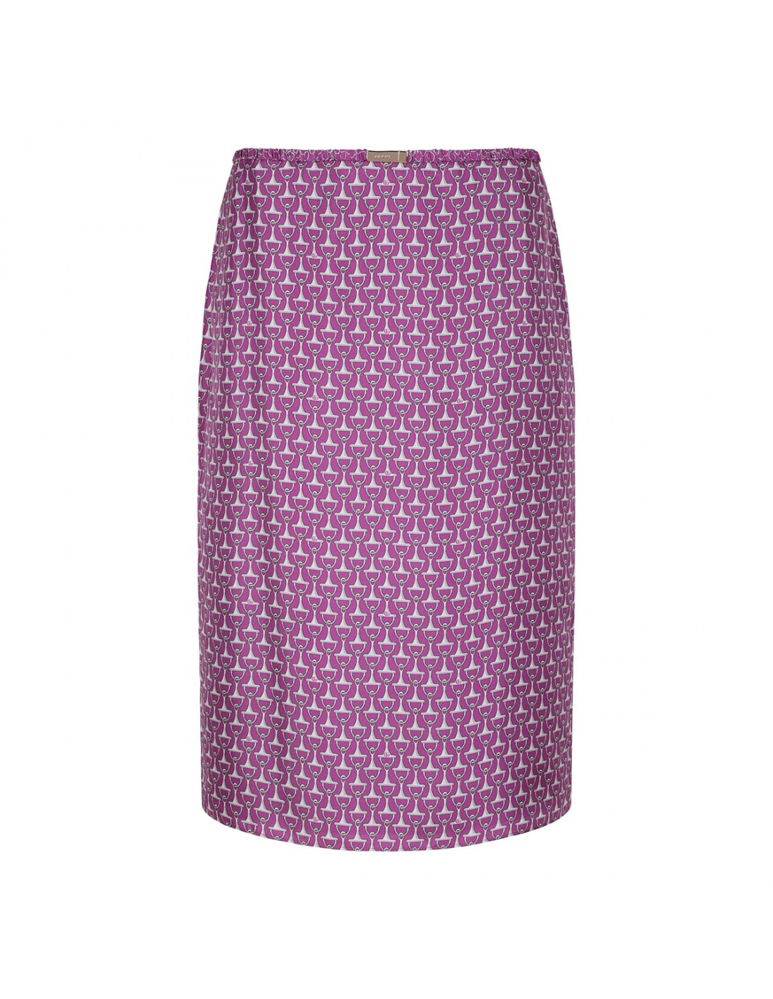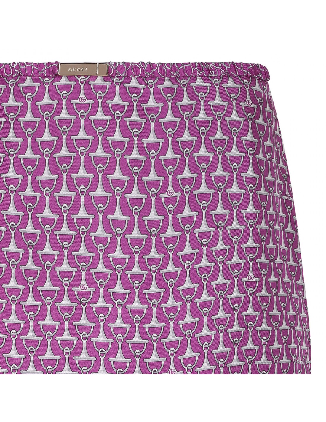 Violet and ivory silk skirt from Gucci featuring half-horsebit printed motif allover, logo plaque on front, zip fastening along back, pencil silhouette.