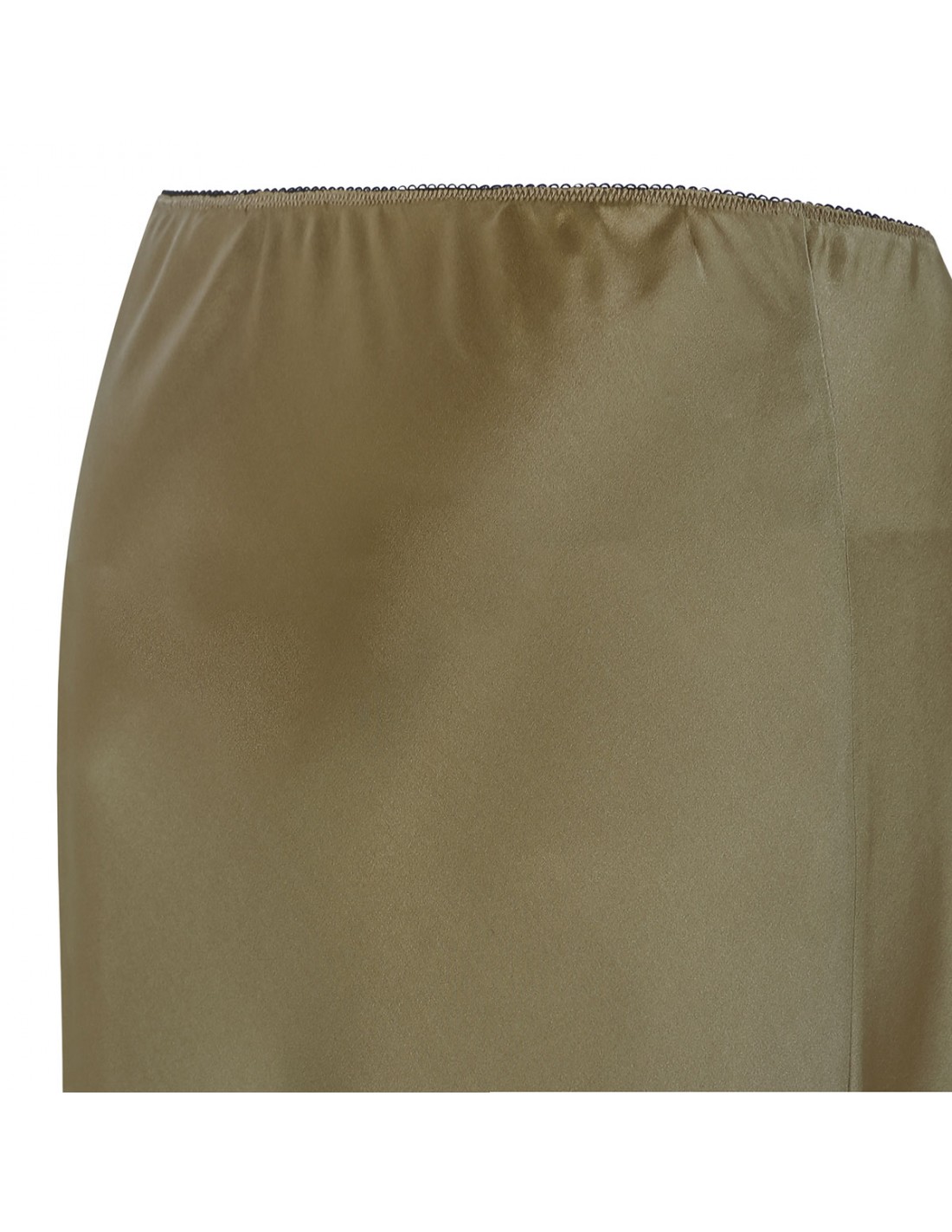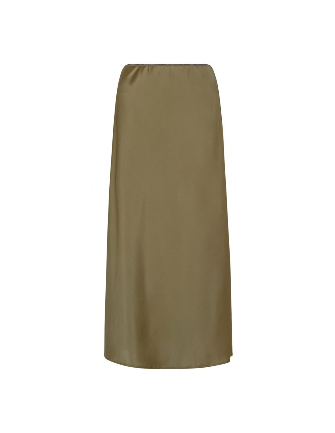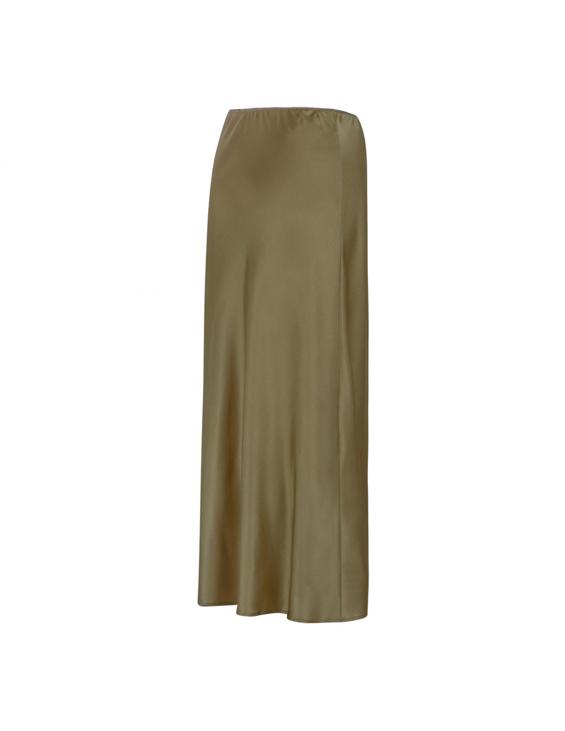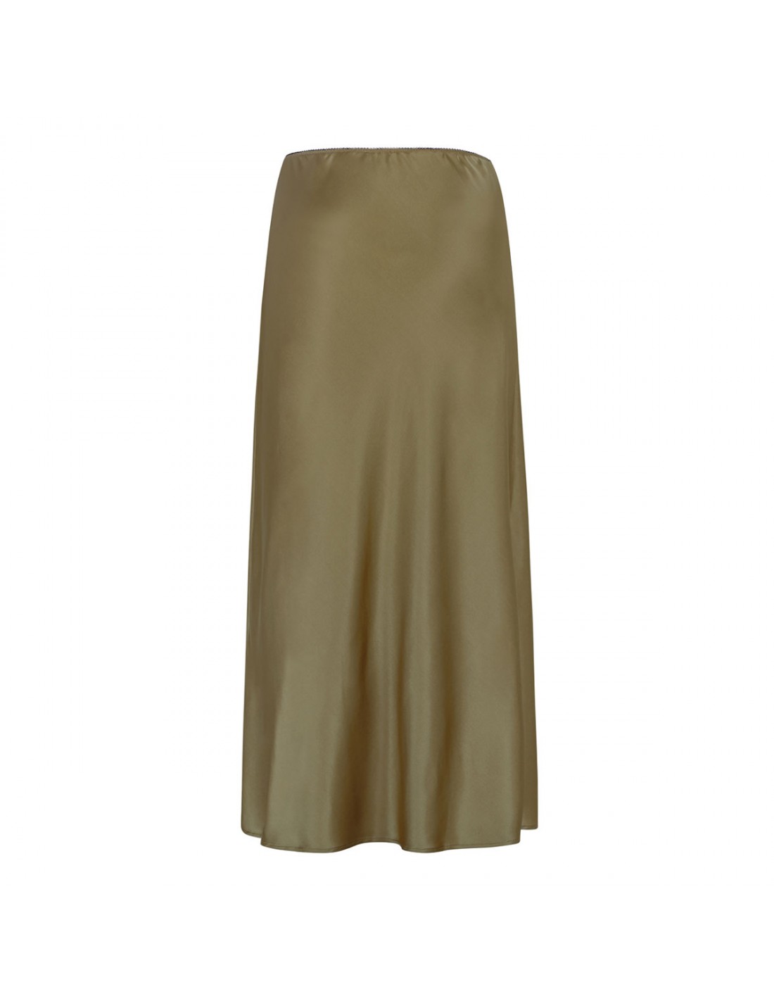 Olive green slightly stretch silk midi skirt from Le Noir featuring elastic waist and clean line.