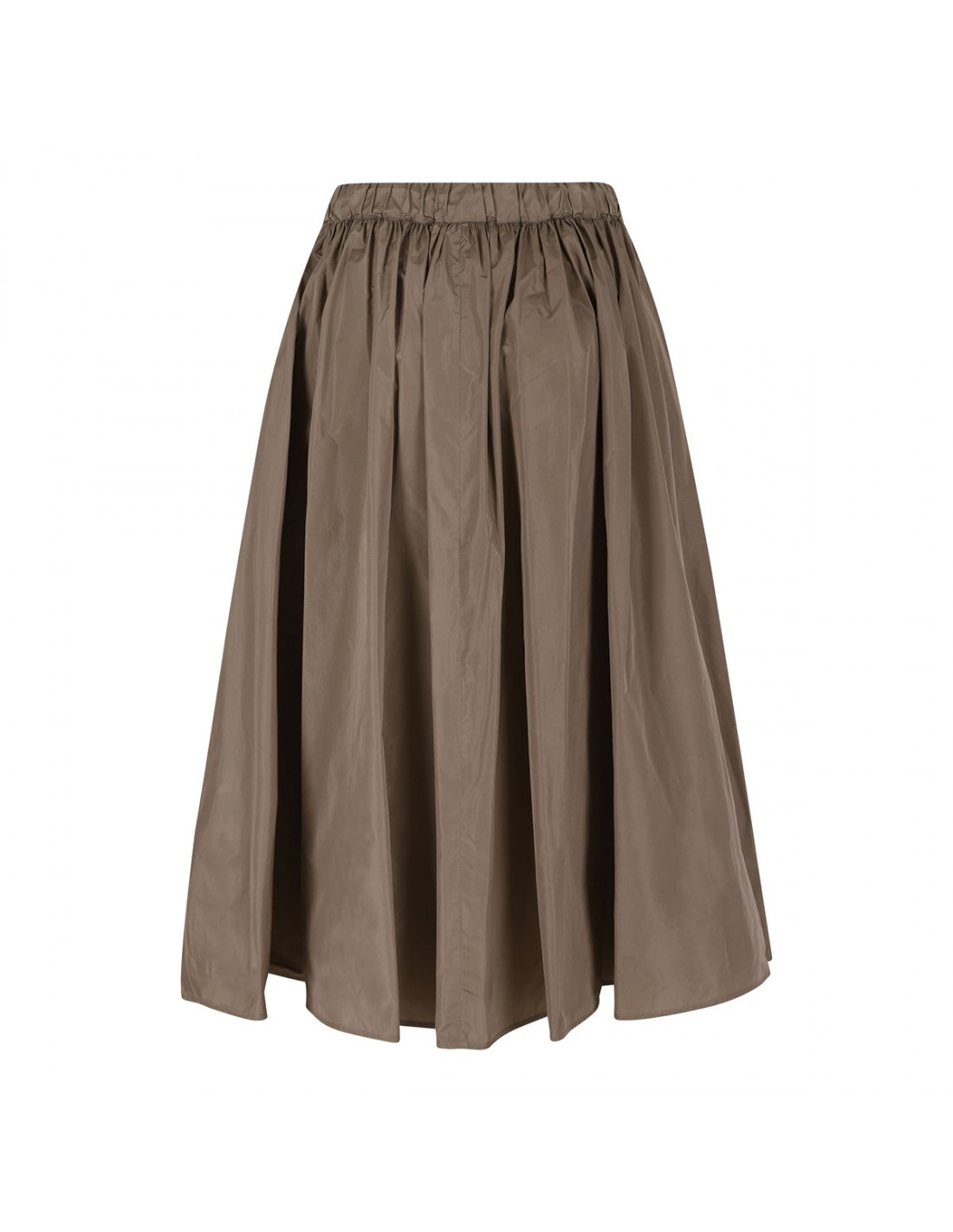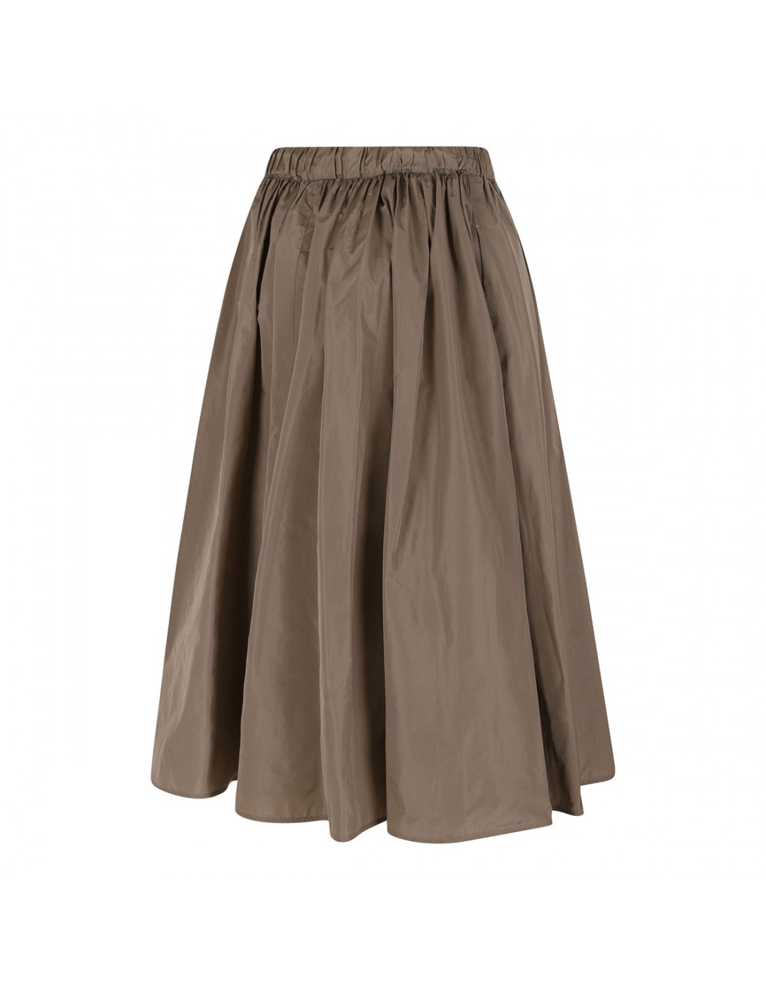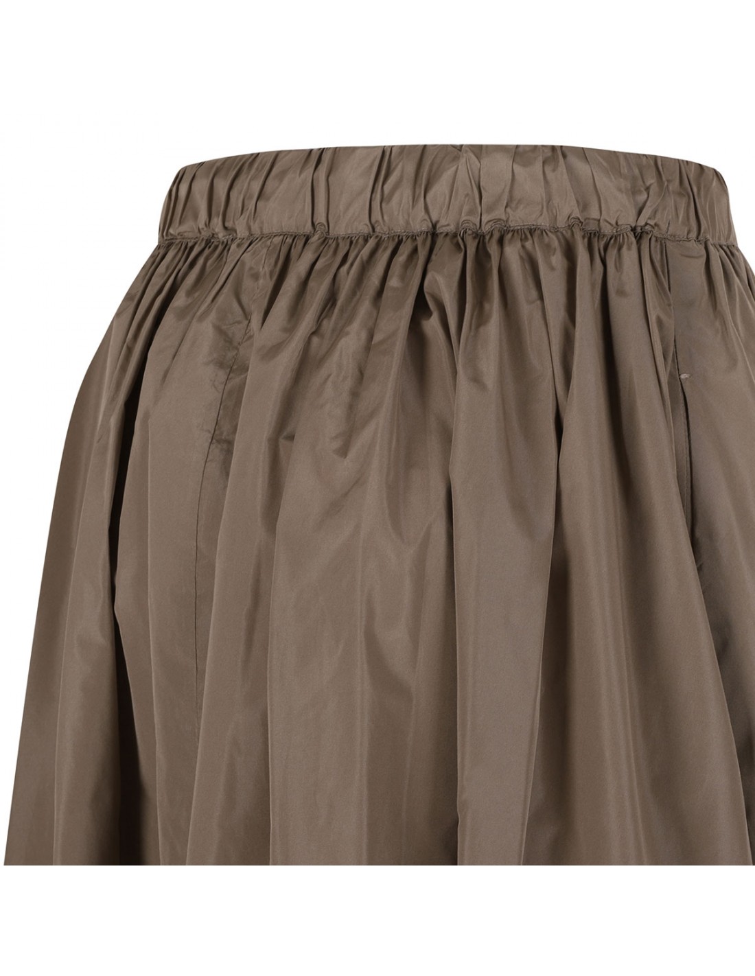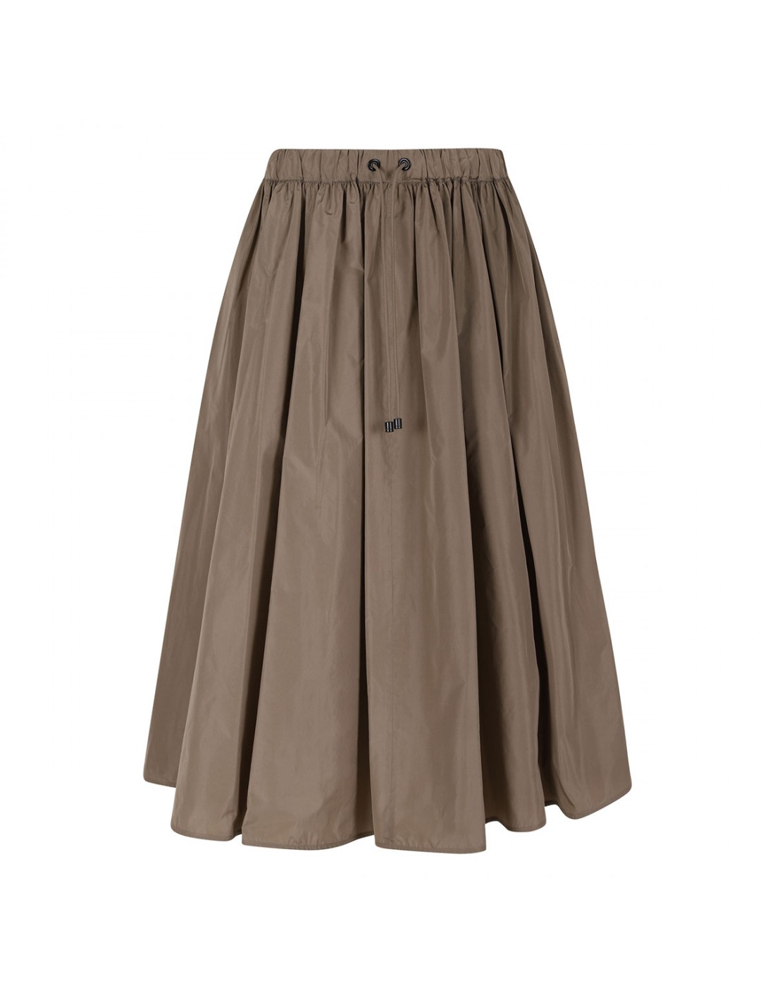 Khaki silk-blend taffeta Lonza skirt from Max Mara featuring elastic waist with tubular drawstring at waist, horn and metal eyelet detail, flared silhouette.