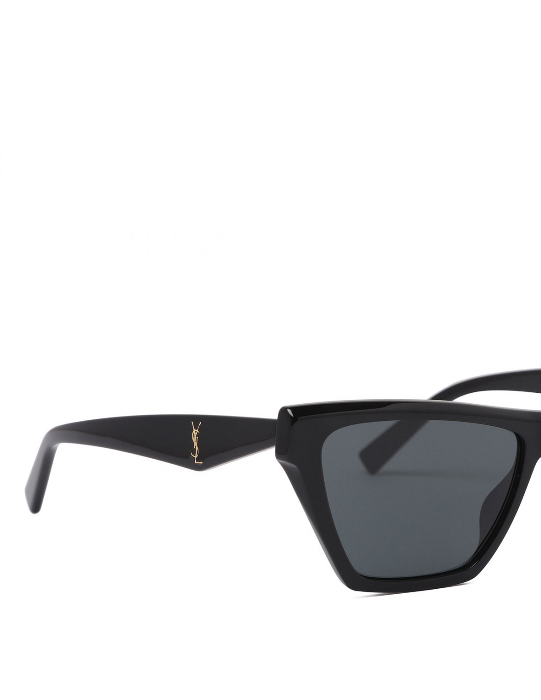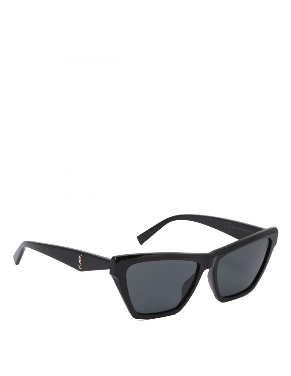 Black acetate SL M103 sunglasses from Saint Laurent featuring cat-eye frame, Cassandre at the temples, black nylon lenses with 100% UVA/UVB protection.