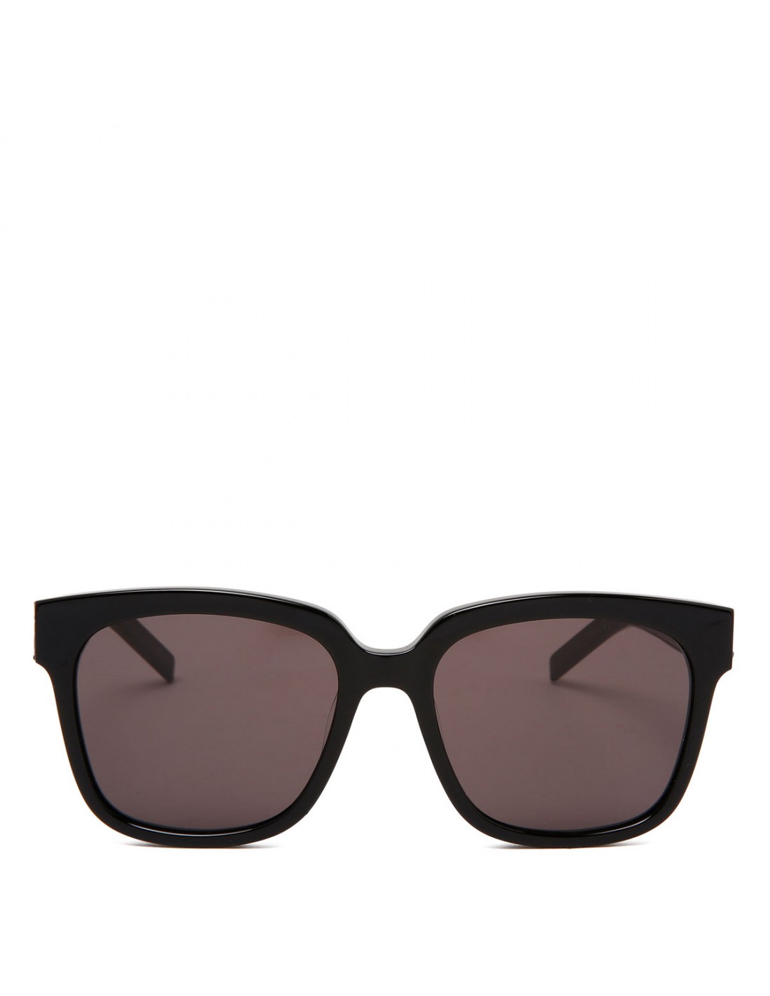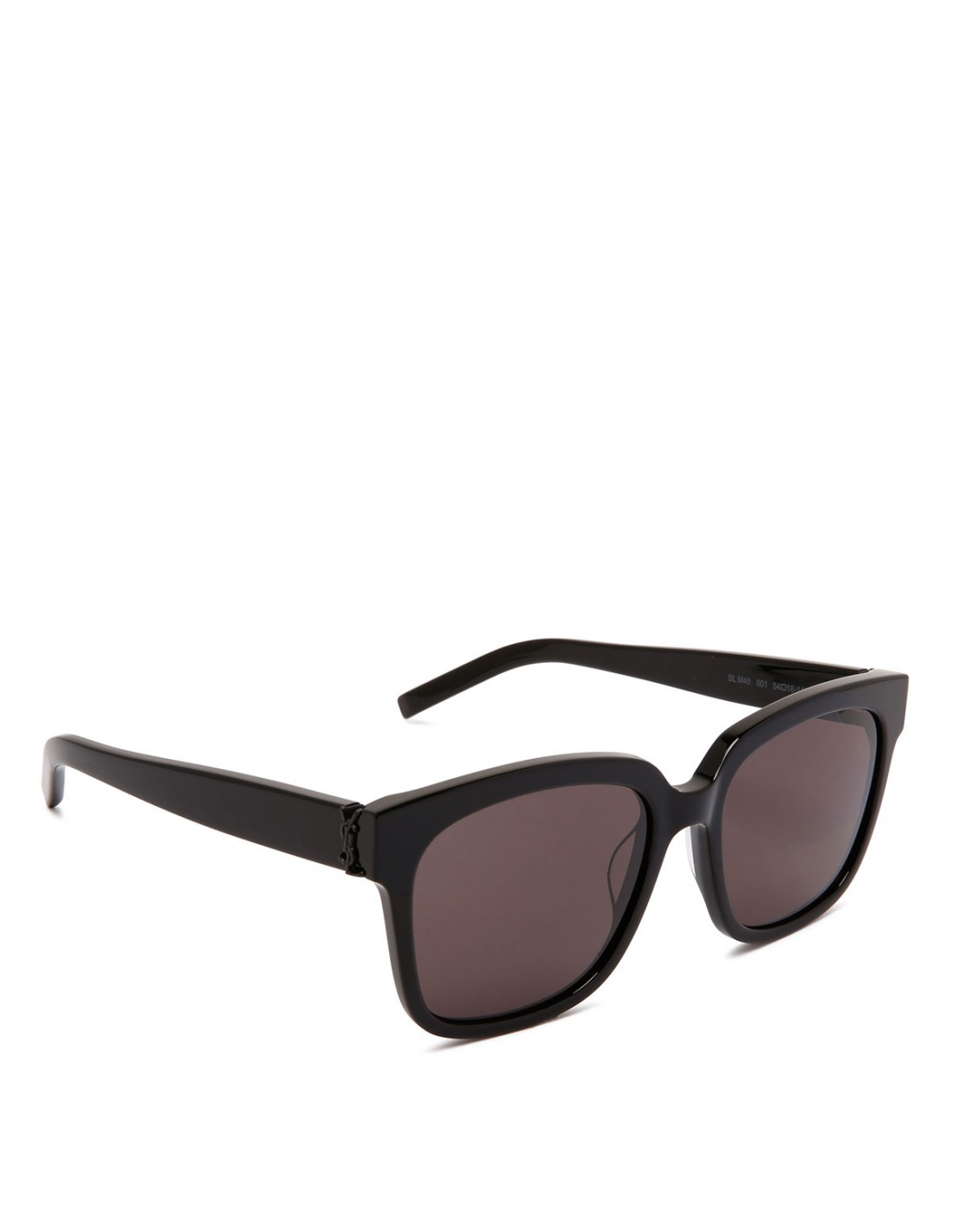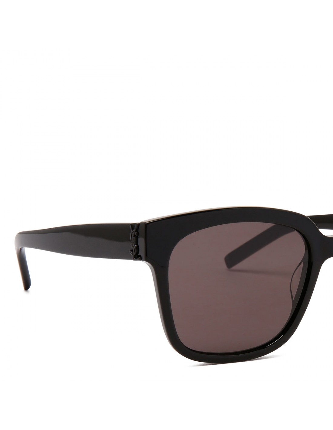 Black acetate Monogram SL M40 sunglasses from Saint Laurent featuring thick and rounded frame, black YSL badge on temples, nylon lenses with 100% UVA/UVB protection.