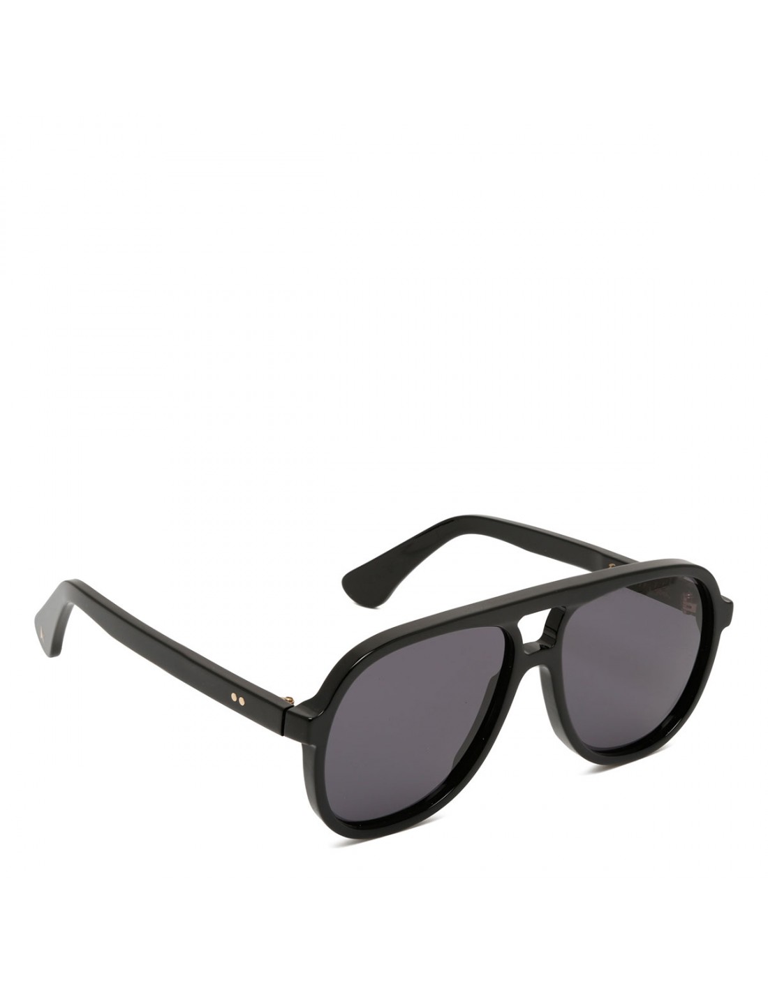 Black acetate Sunframe Charlie sunglasses from Golden Goose featuring aviator shape, two iconic Golden stars on the temple tips, gray-colored lenses with 100% UVA and UVB lenses.