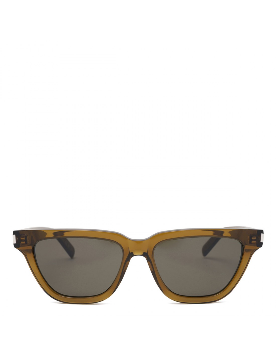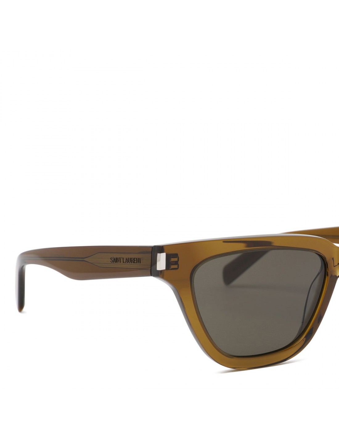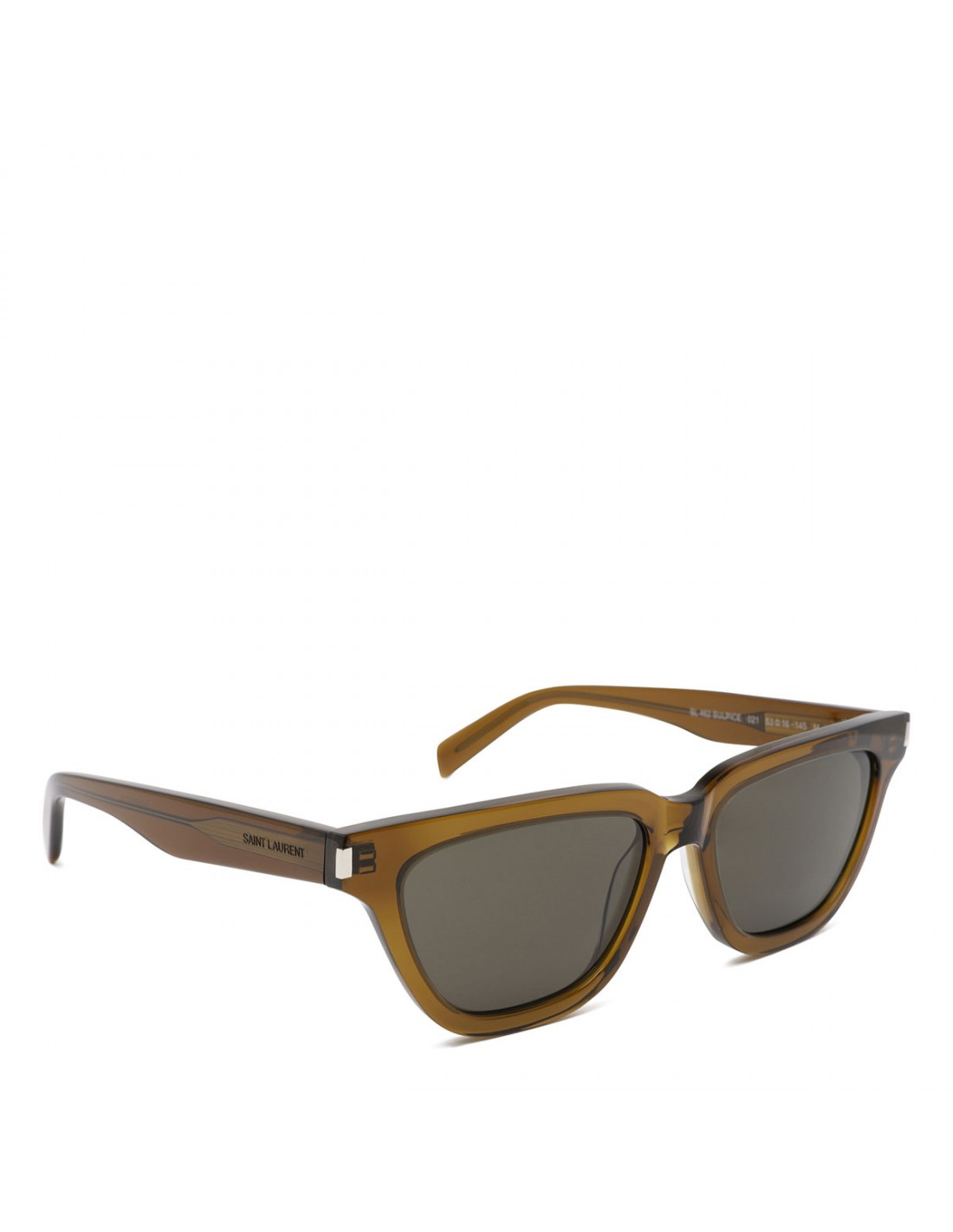 Transparent khaki acetate SL 462 butterfly Wellington Sulpice sunglasses from Saint Laurent featuring logo engraved temples, gray lenses with 100% UVA/UVB protection.