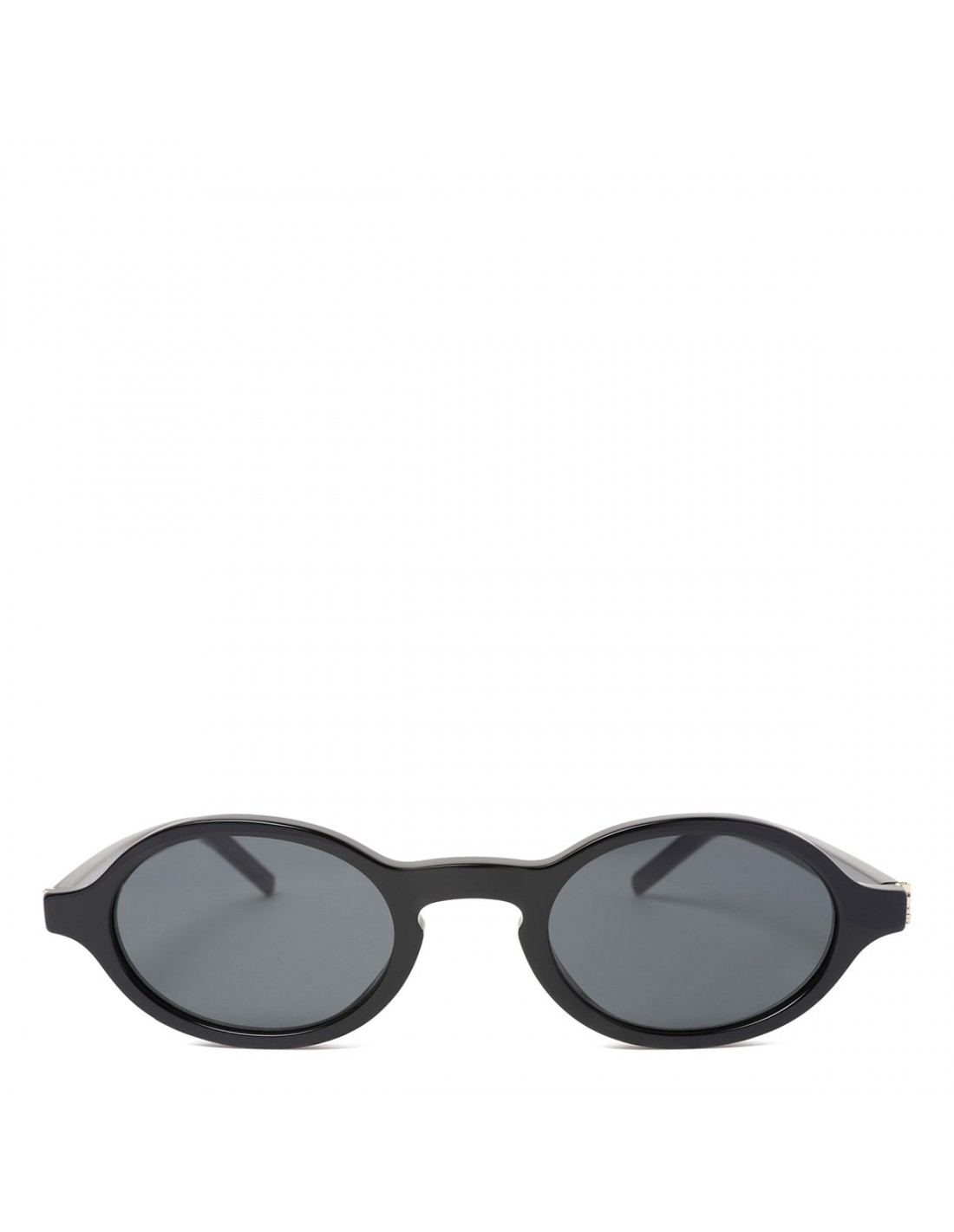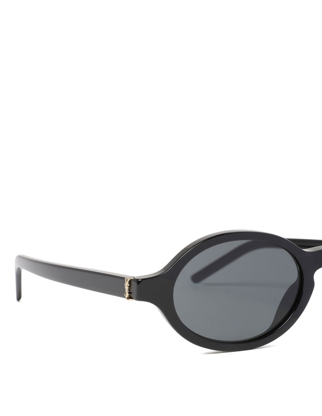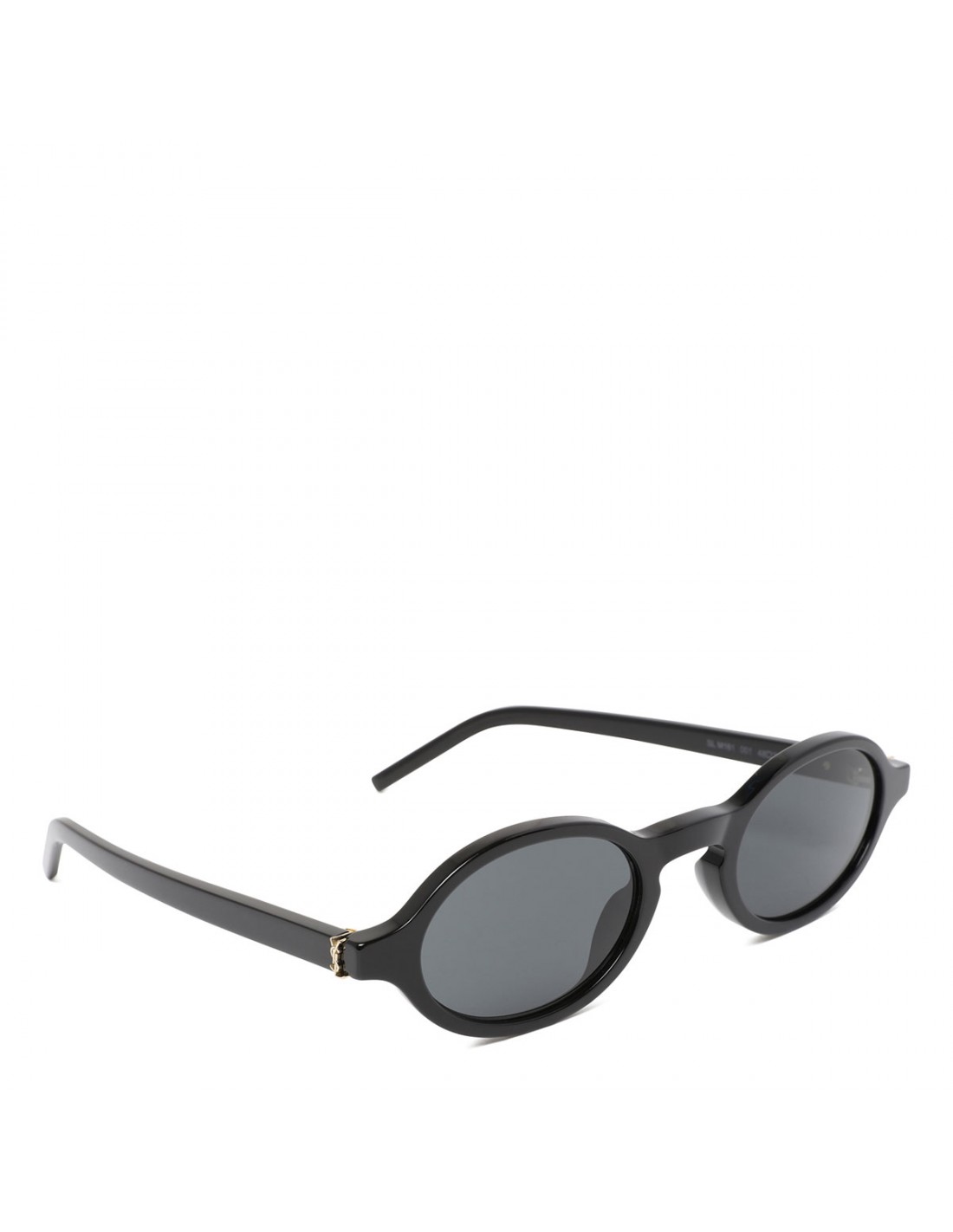 Black acetate SL M161 sunglasses from Saint Laurent featuring oval frame, Cassandre at the temples, black nylon lenses with 100% UVA/UVB protection.