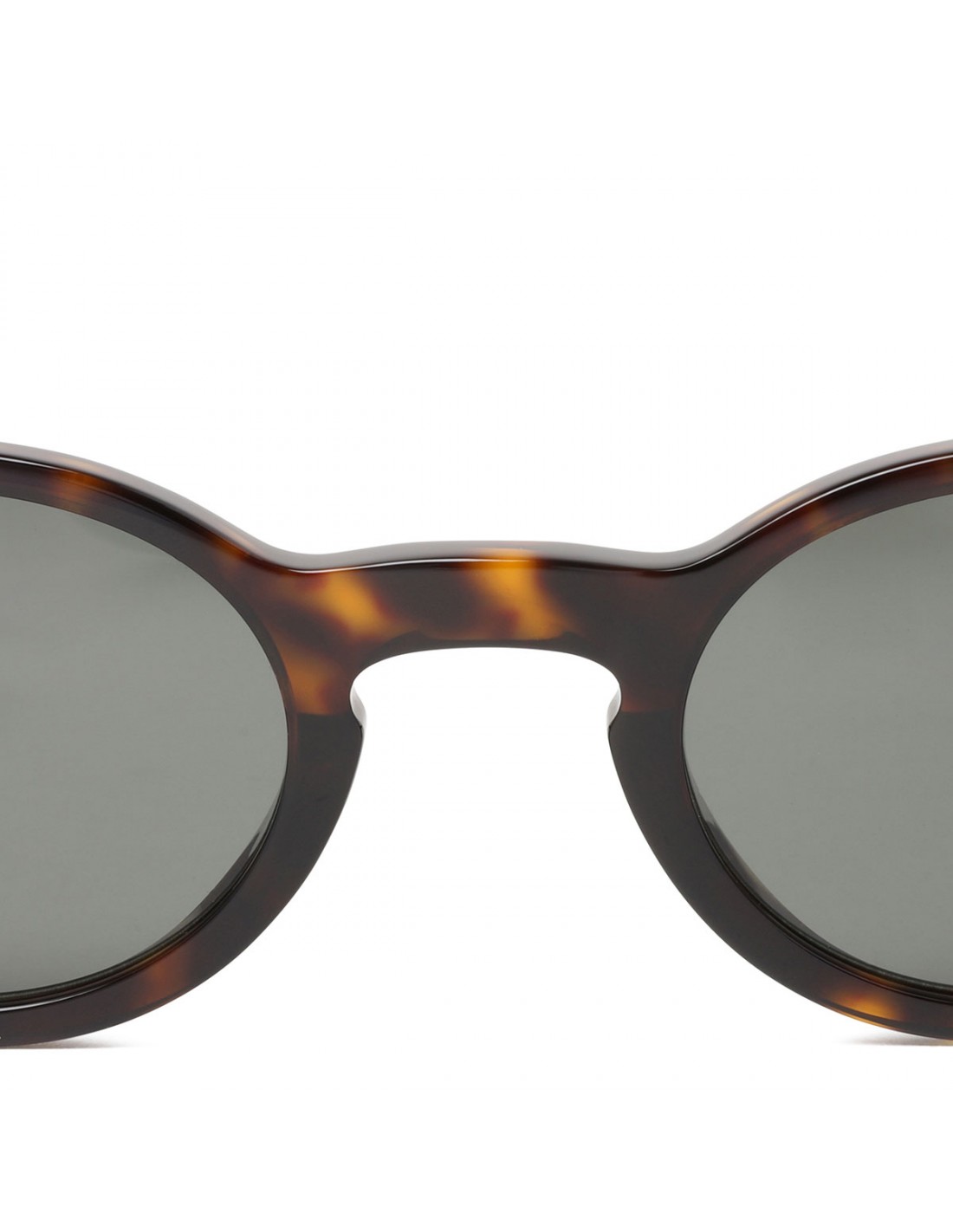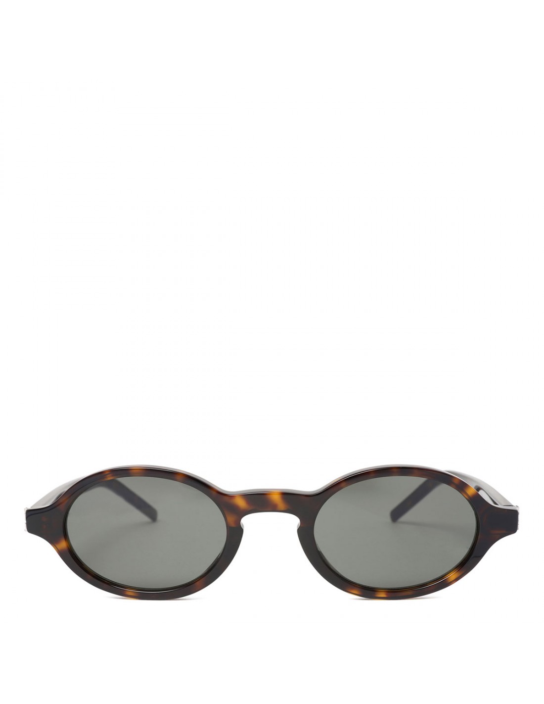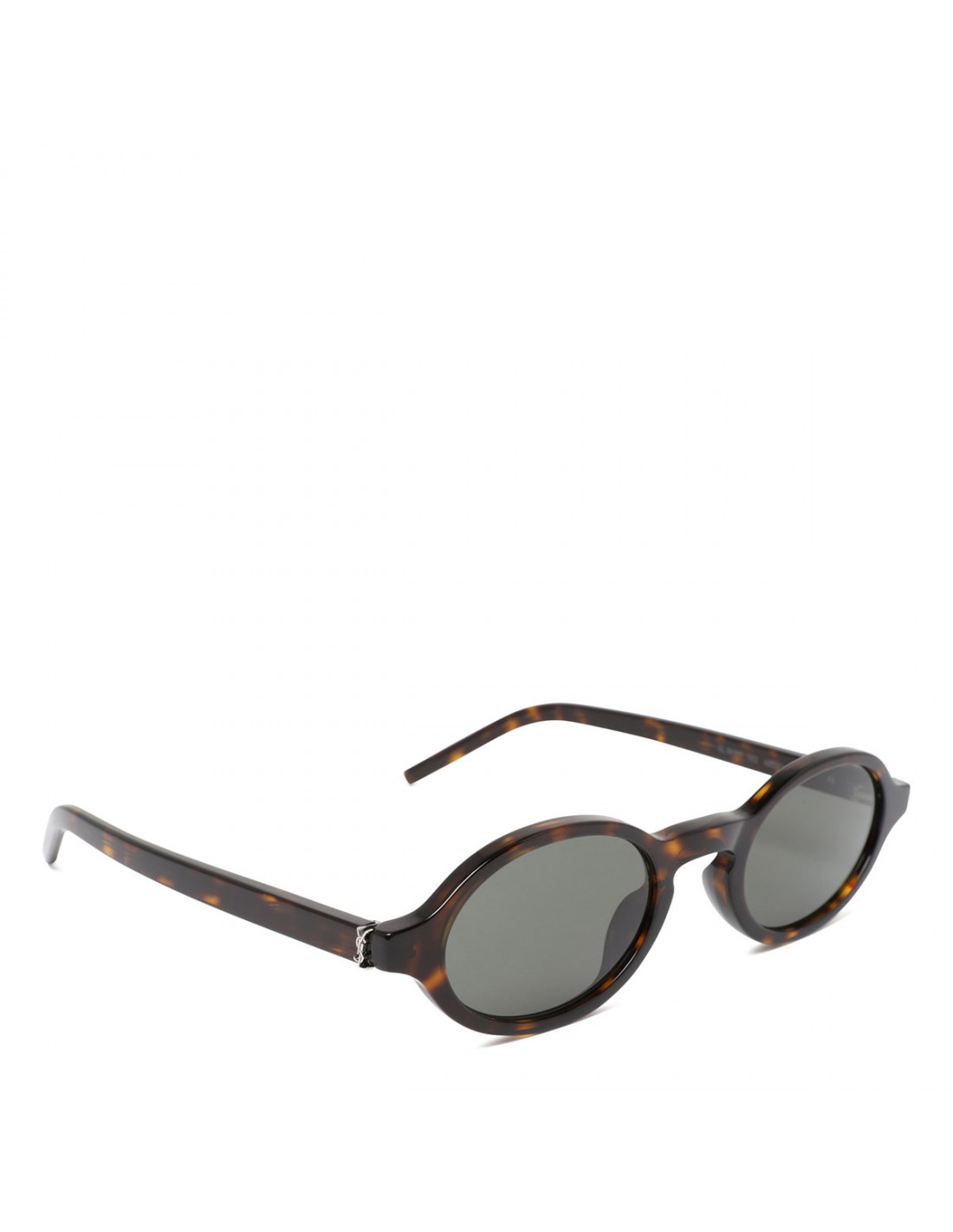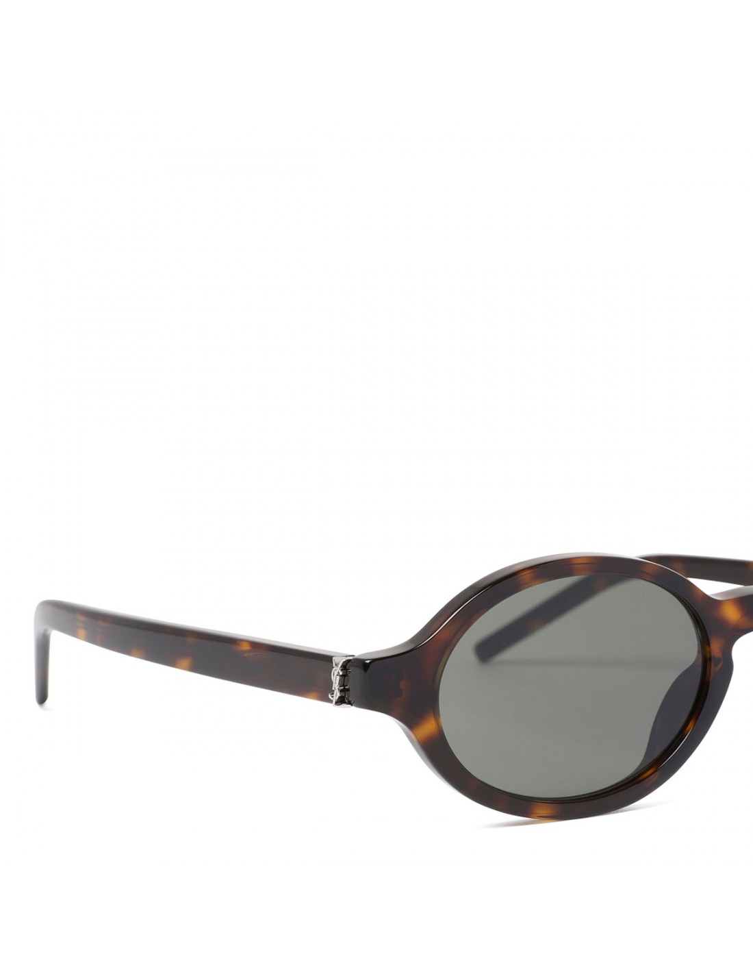Havana brown tortoiseshell acetate SL M161 sunglasses from Saint Laurent featuring oval frame, Cassandre at the temples, black nylon lenses with 100% UVA/UVB protection.