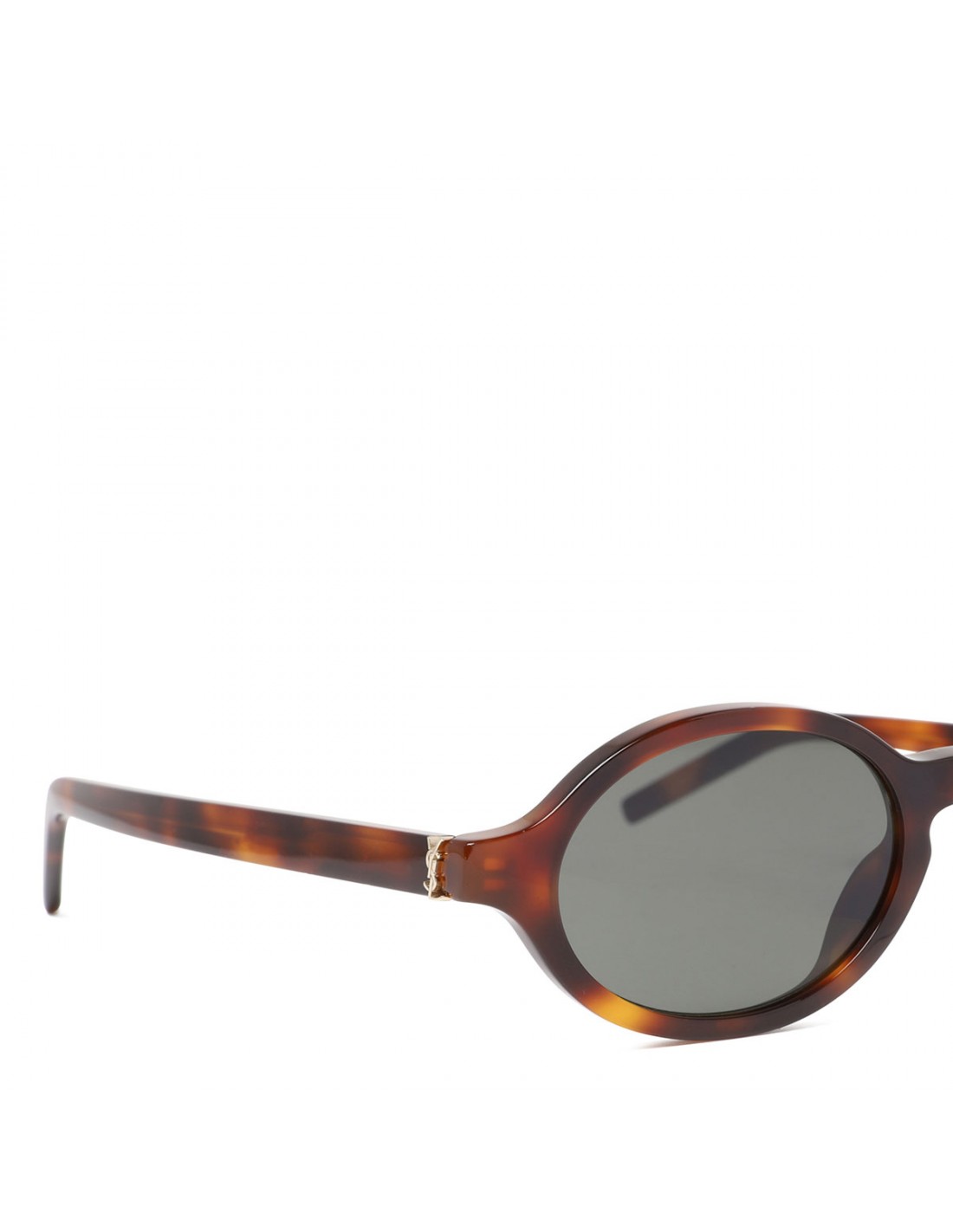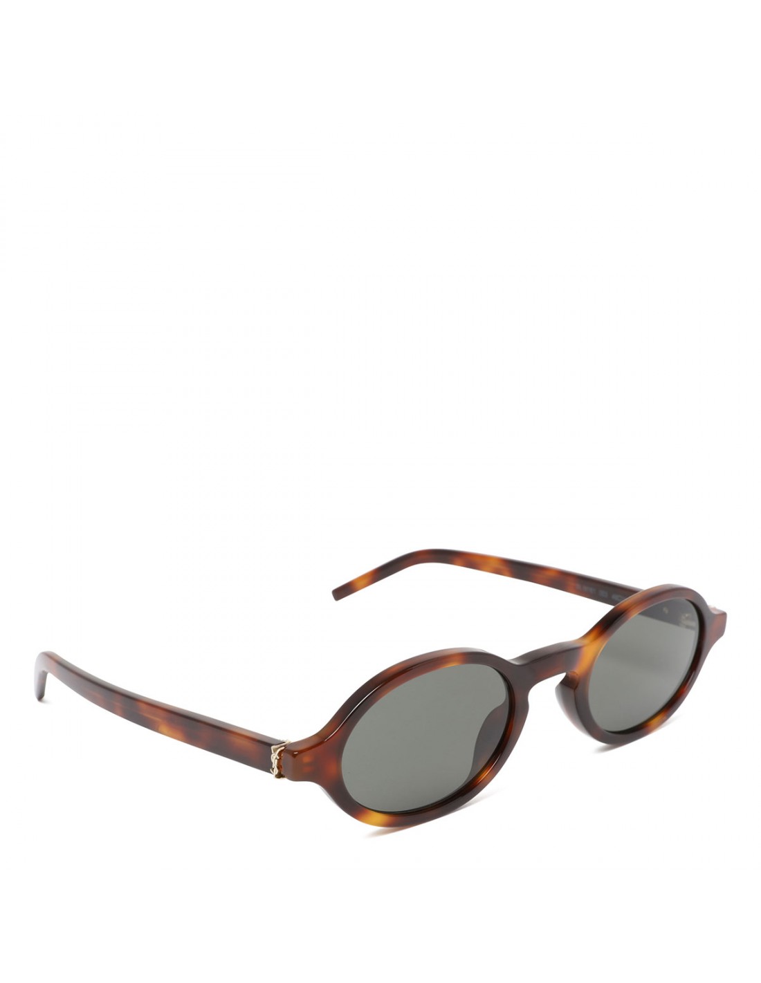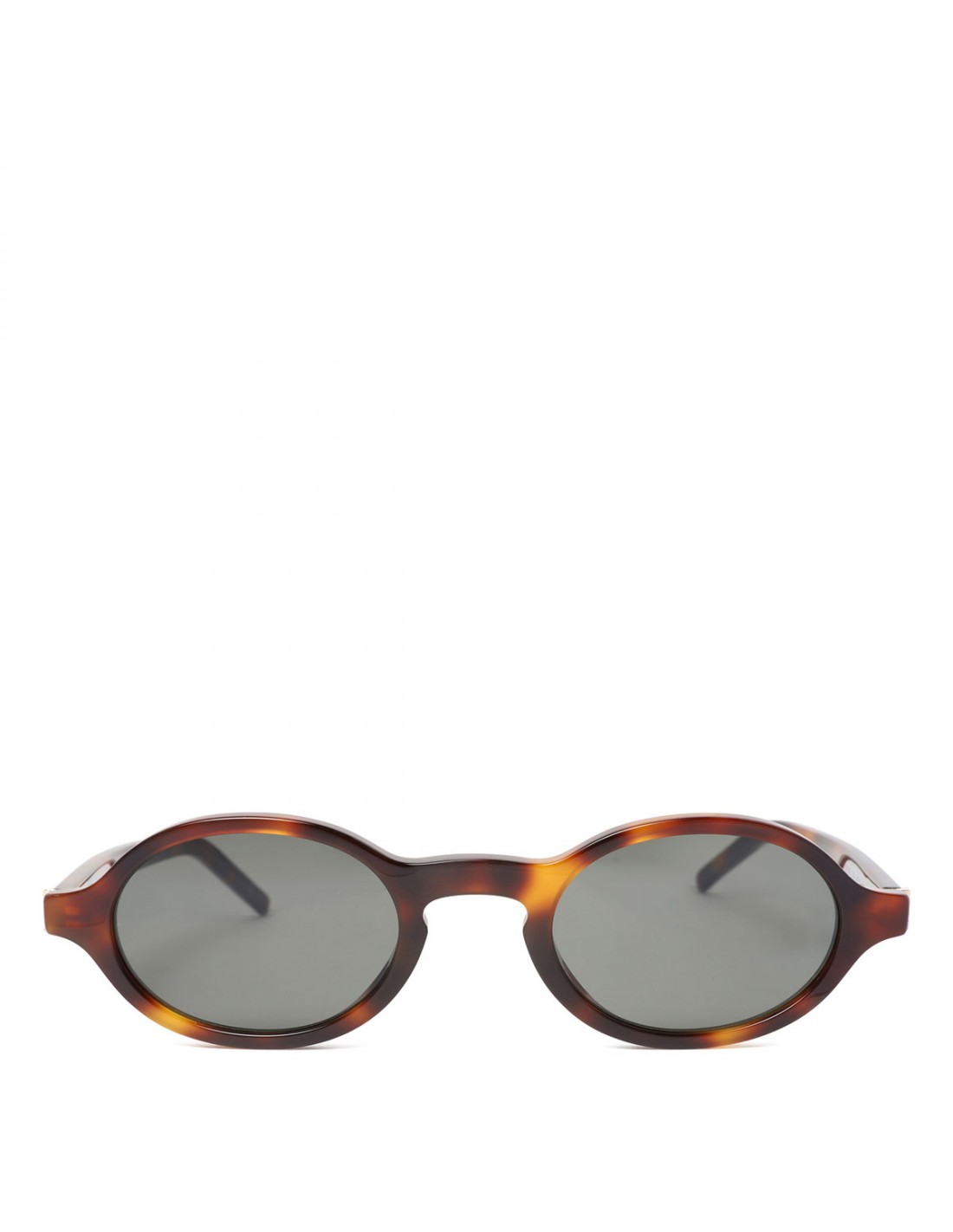 Medium havana tortoiseshell acetate SL M161 sunglasses from Saint Laurent featuring oval frame, Cassandre at the temples, gray nylon lenses with 100% UVA/UVB protection.