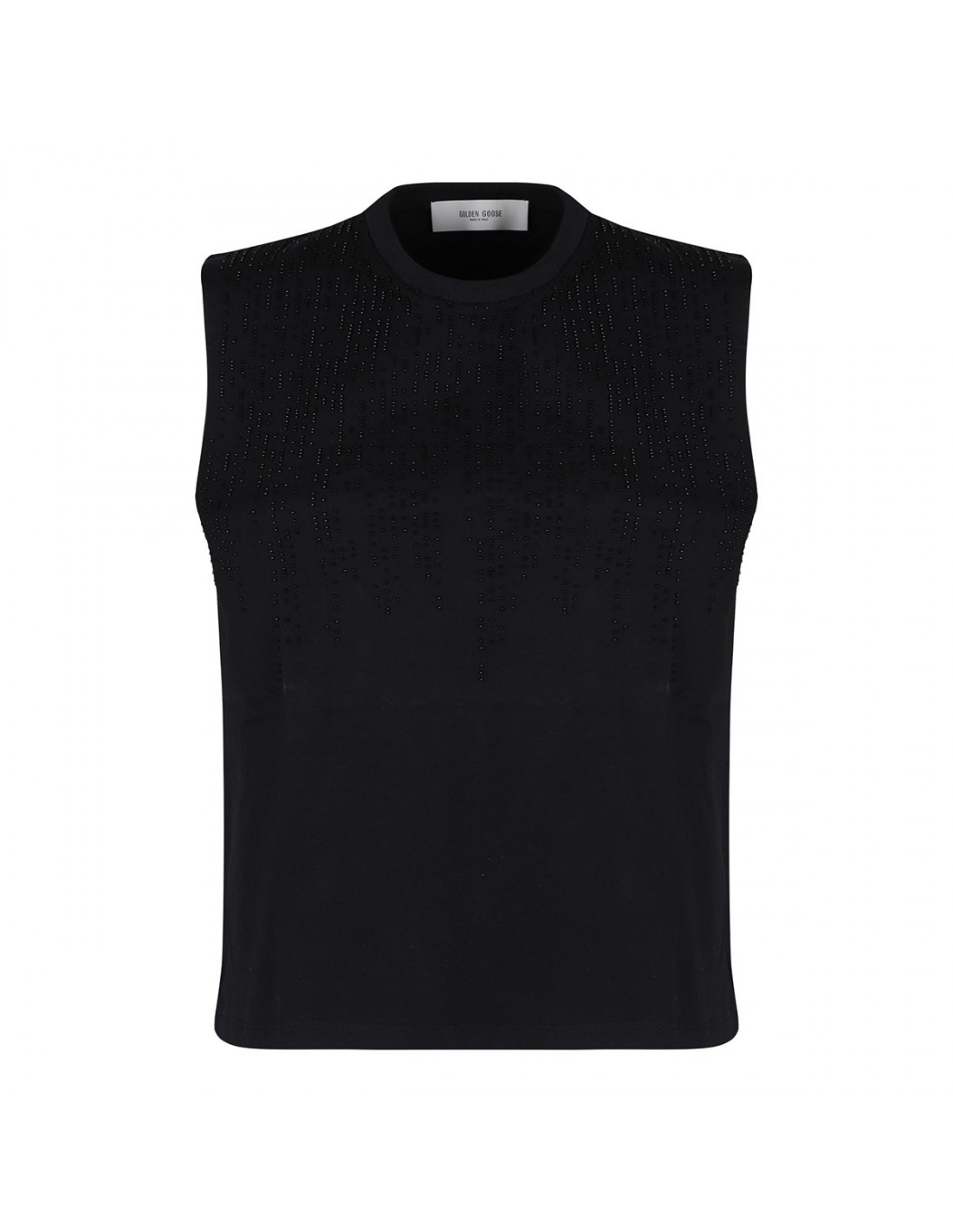 Black cotton top from Golden Goose featuring sleeveless silhouette, double star on the back collar, crew collar and slim fit.