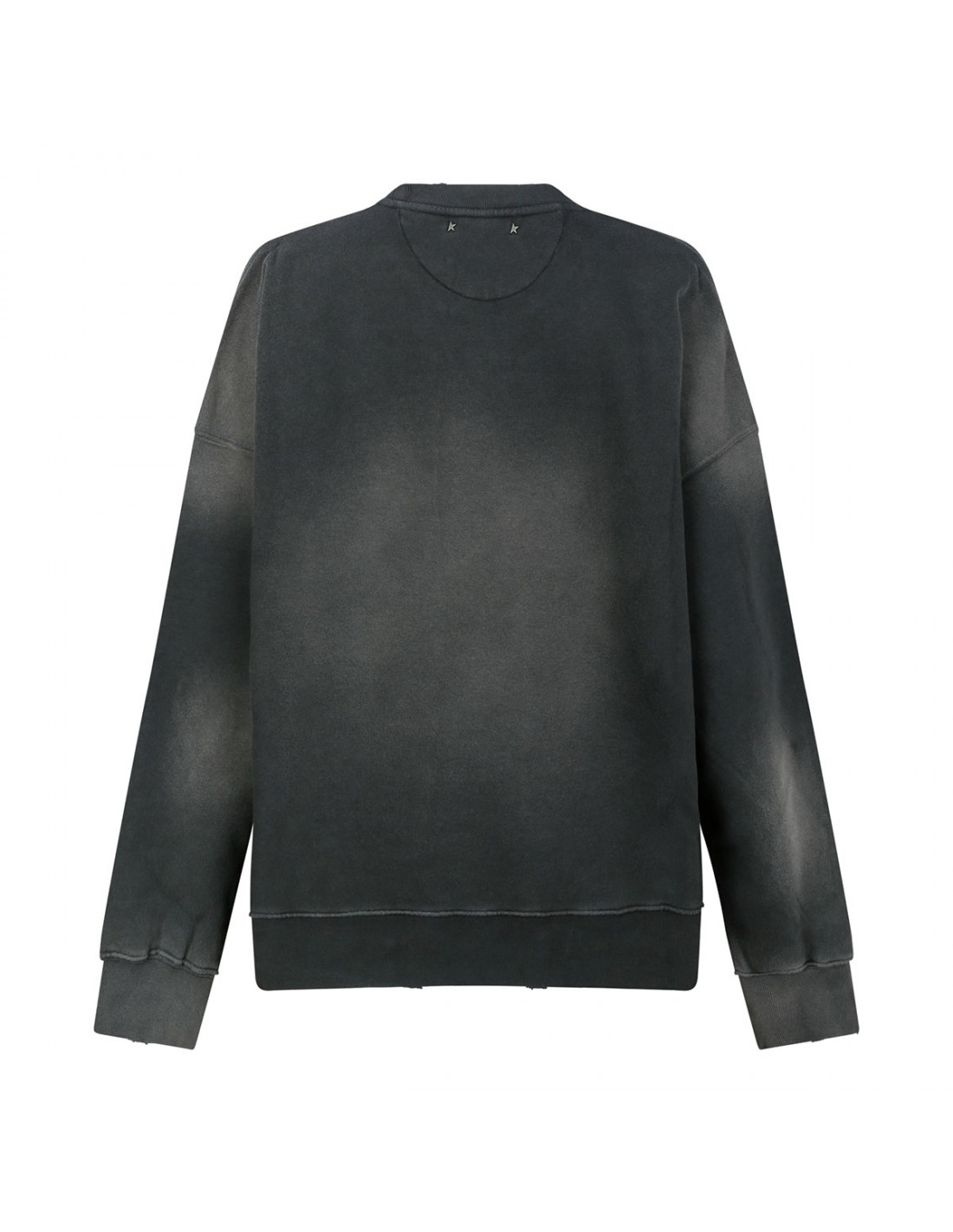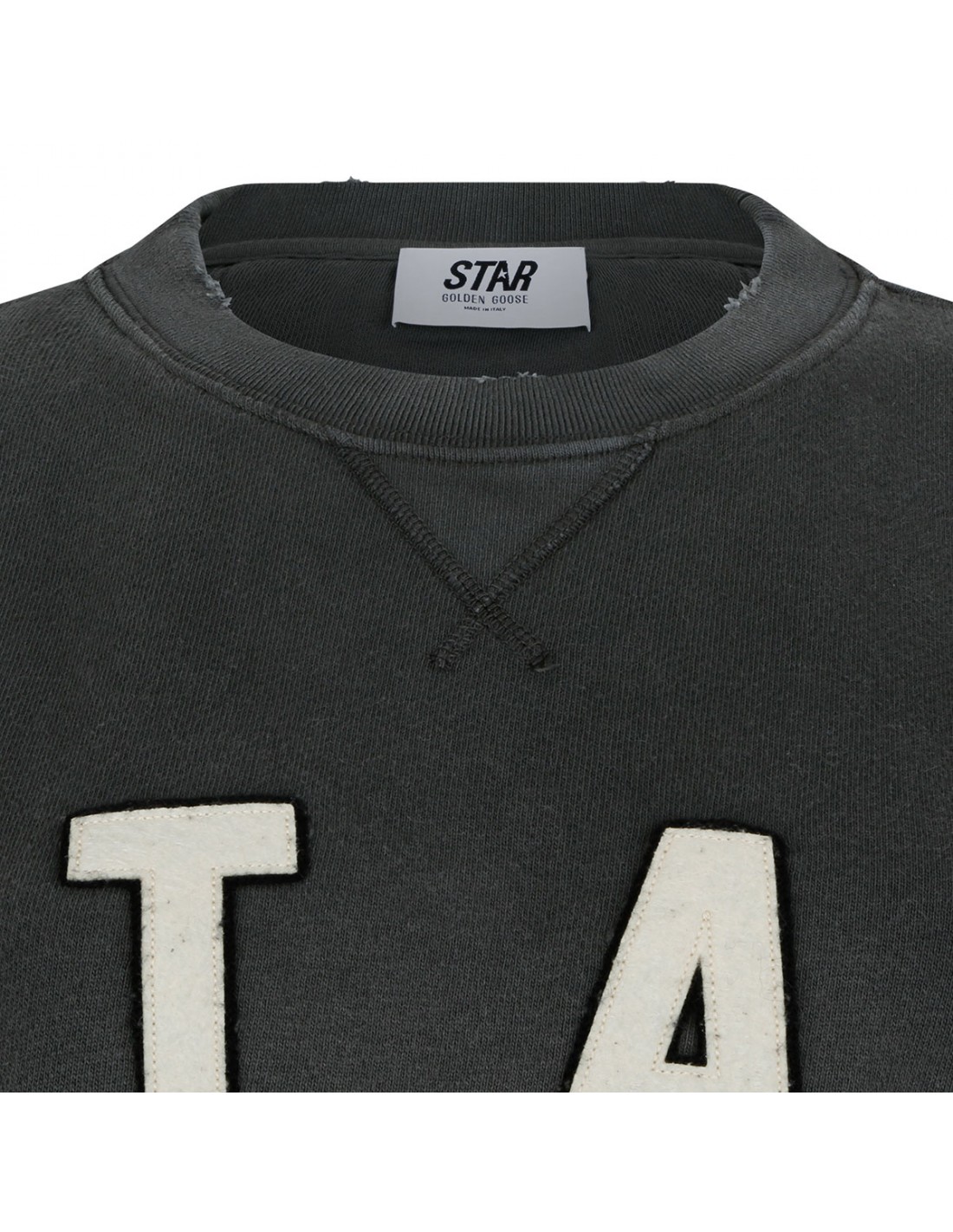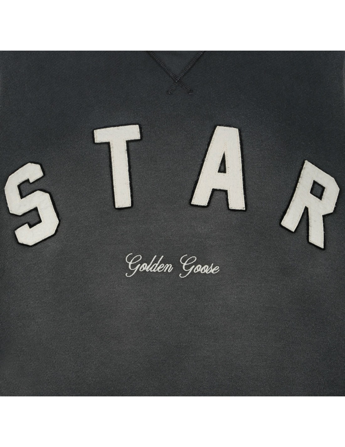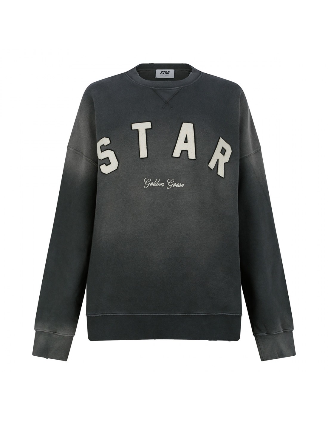 Charcoal gray cotton sweatshirt from Golden Goose featuring Star lettering print on chest, vintage finishing, double star on back collar, long sleeves, dropped shoulders, ribbed-knit edges.
