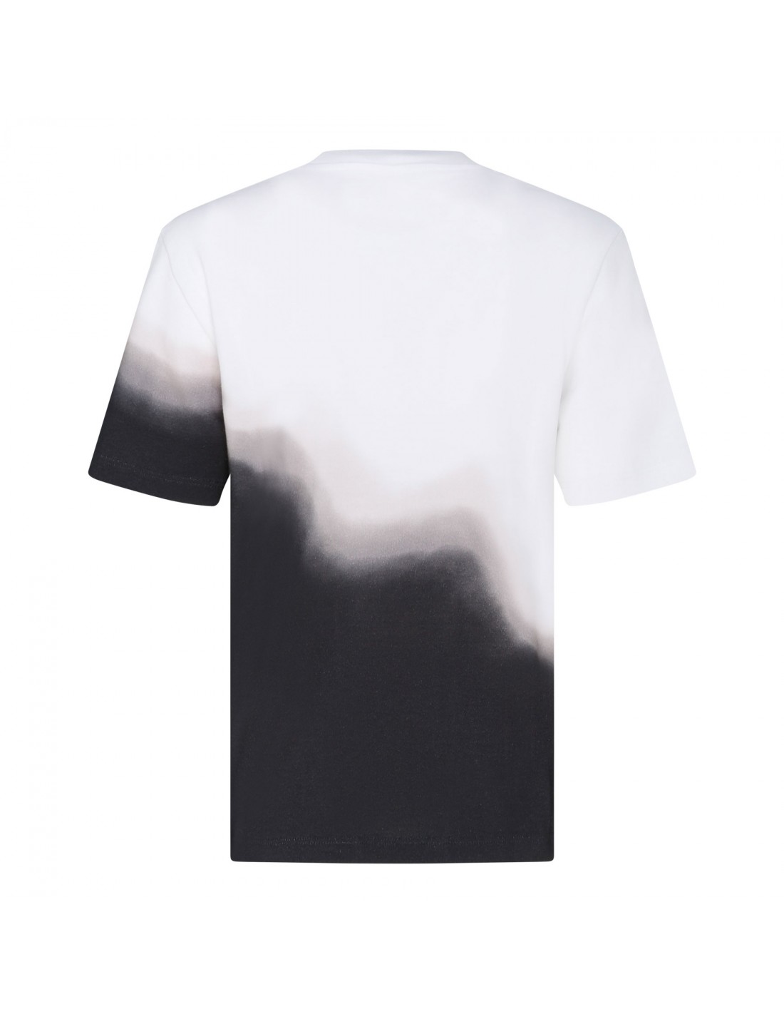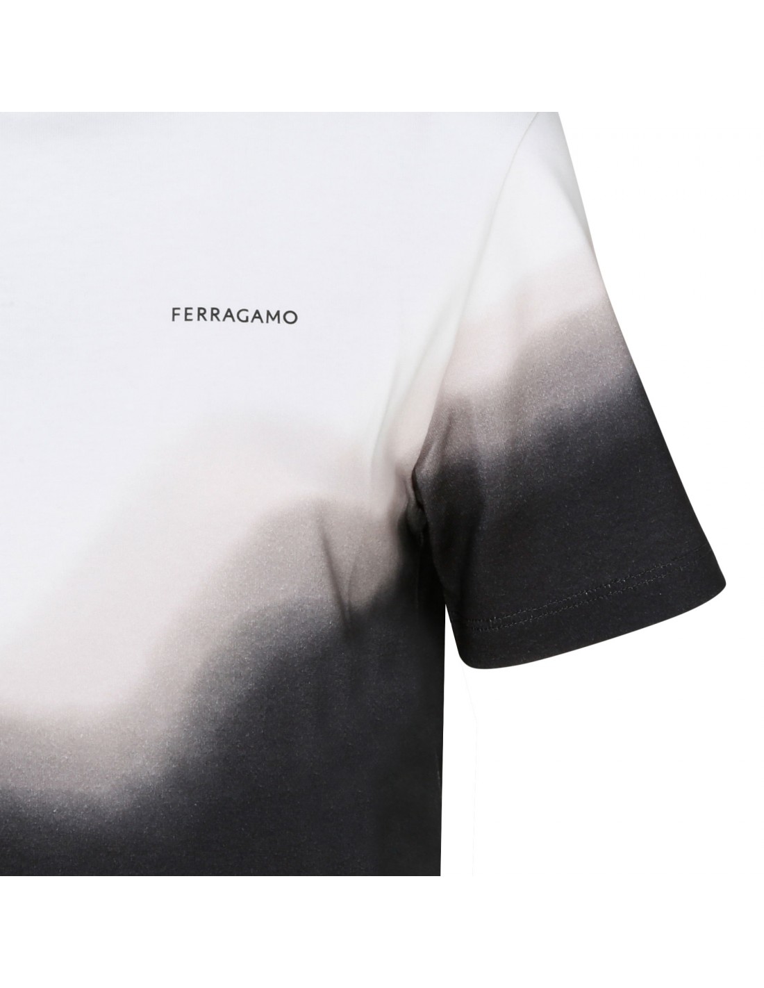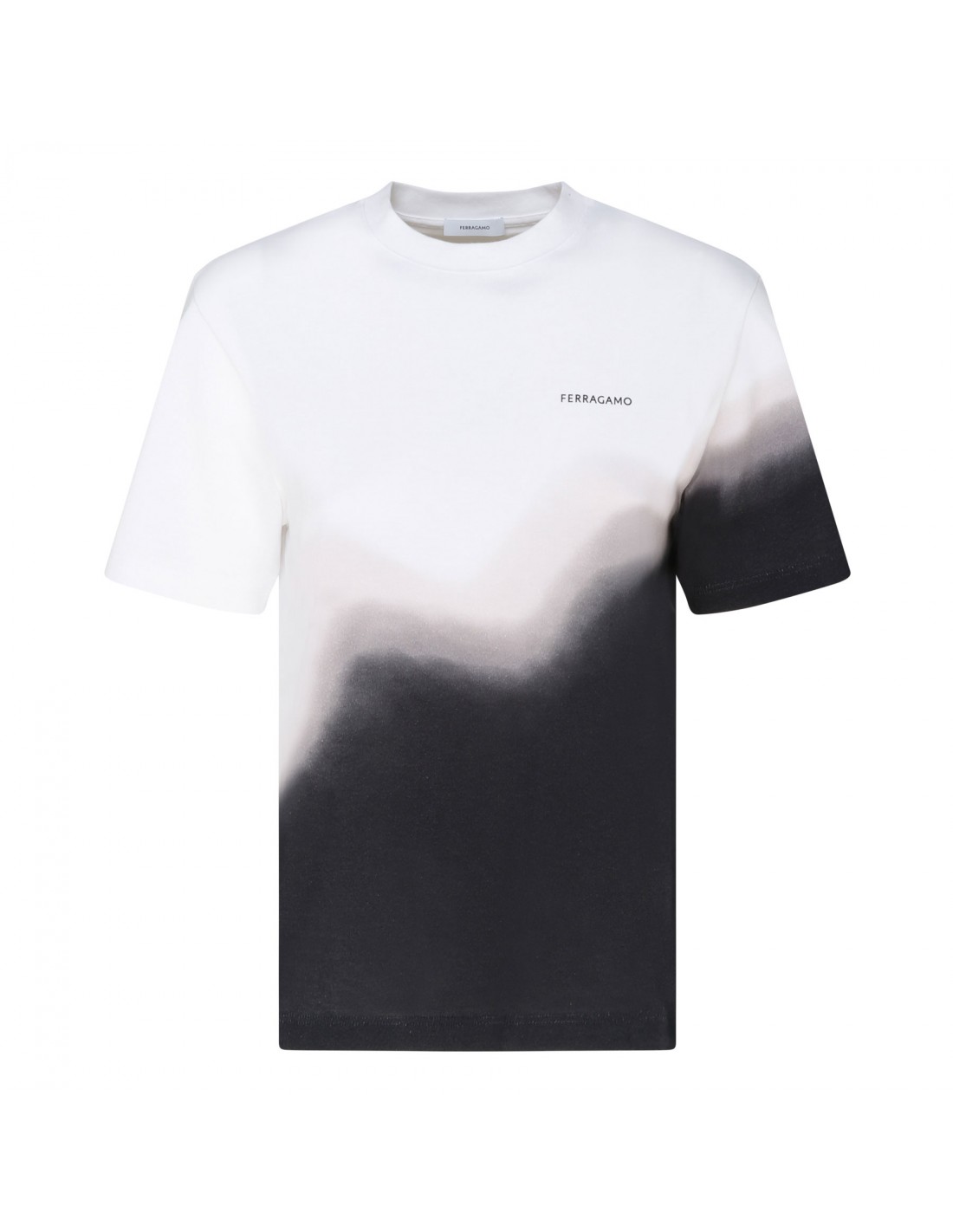 White and black jersey cotton T-shirt from Ferragamo featuring diagonal tie-dye pattern across the front and back, regular fit, short sleeves and ribbed-knit crew collar.