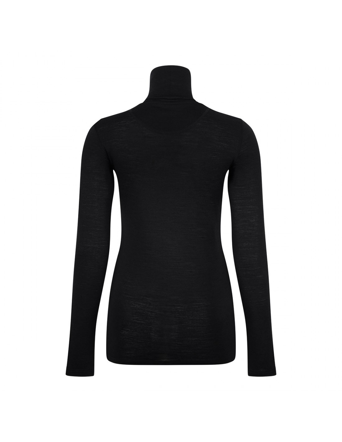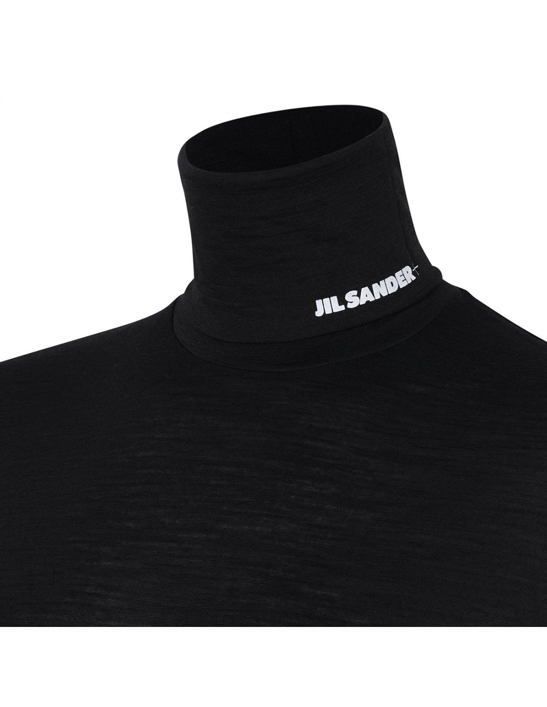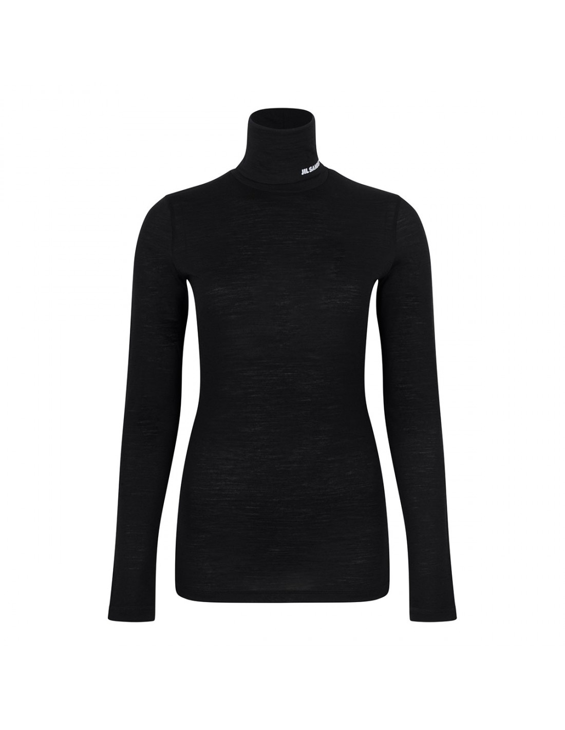 Black lightweight wool blend T-shirt from Jil Sander featuring turtleneck, logo printed on neck, long sleeves, slim fit.