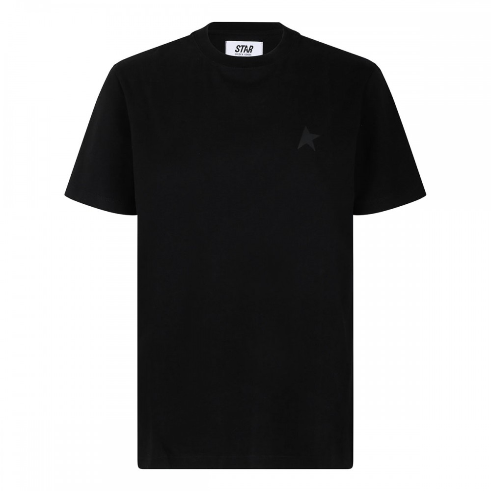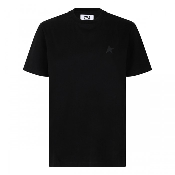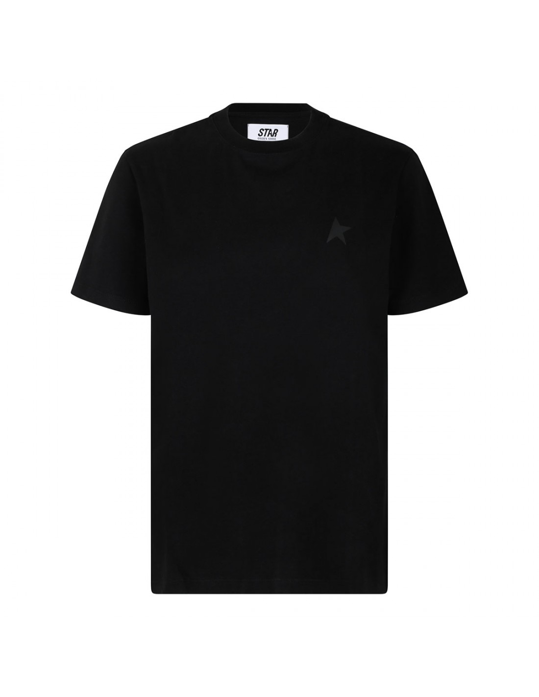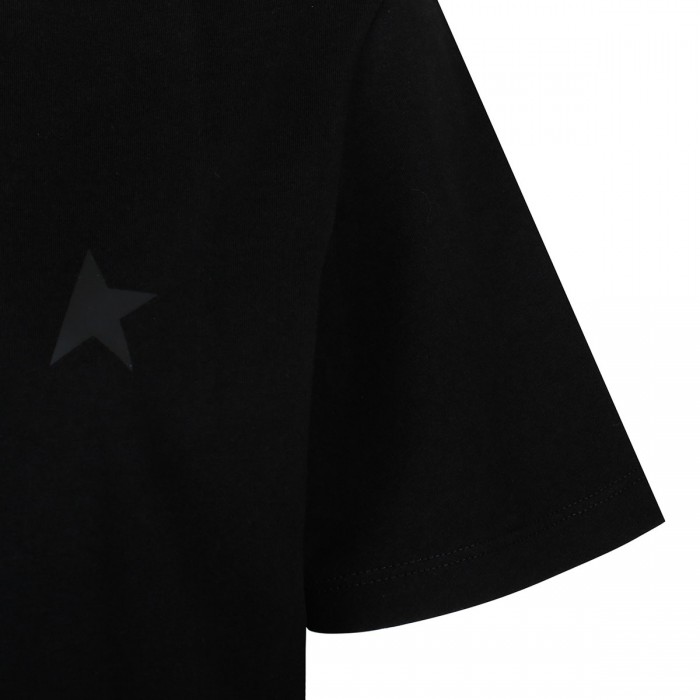 Black cotton T-shirt from Golden Goose with tonal star print on chest, short sleeves, ribbed crew collar, regular fit.