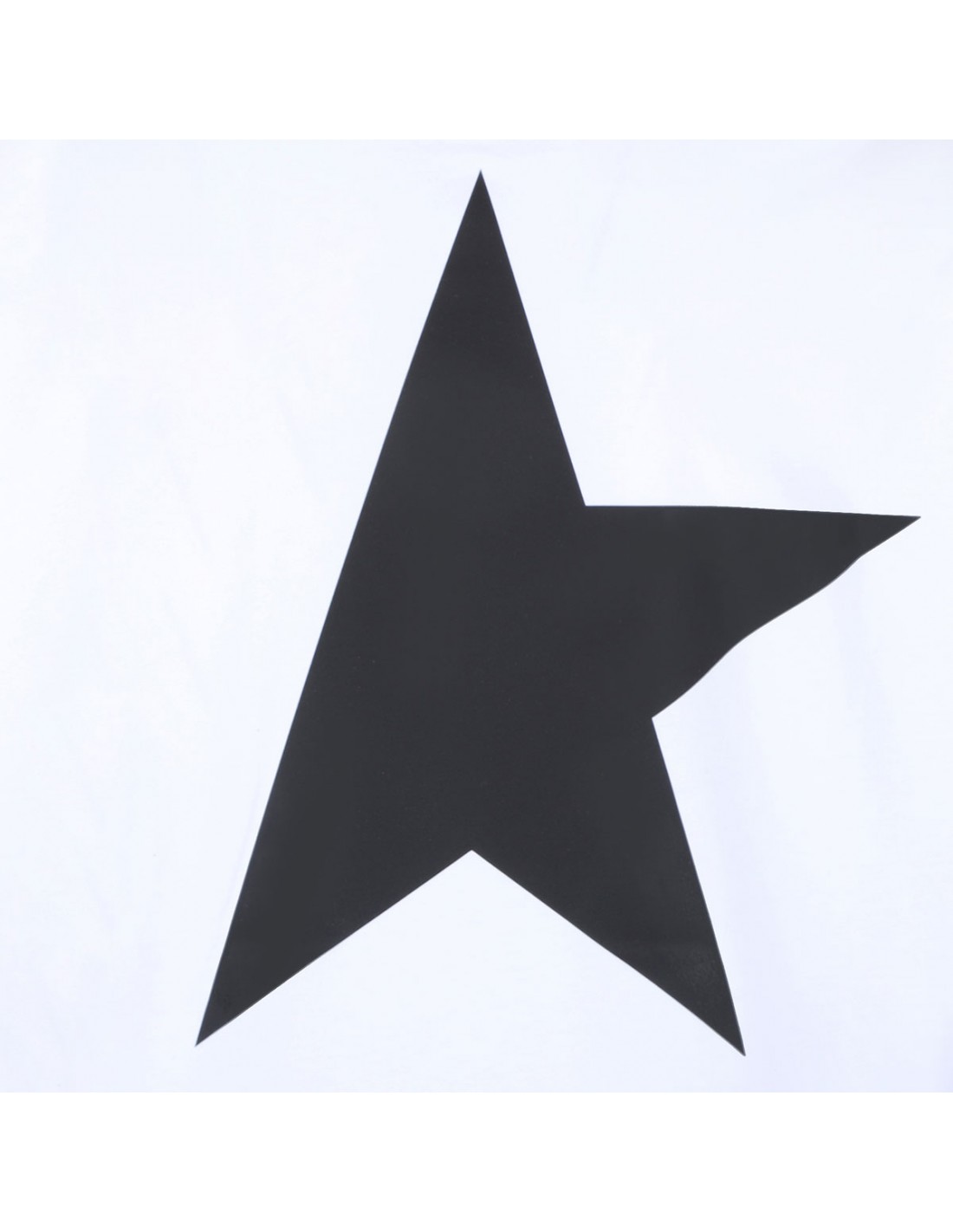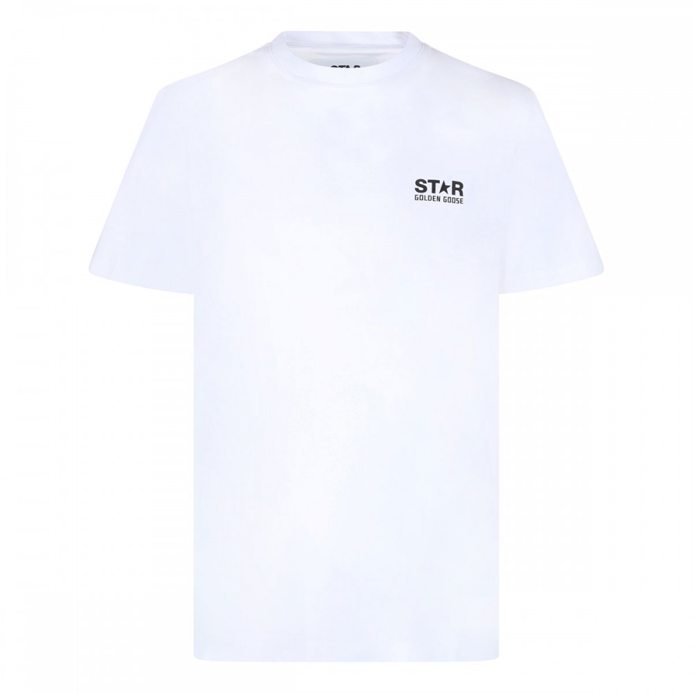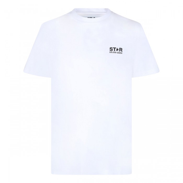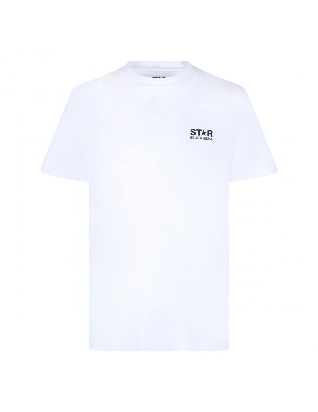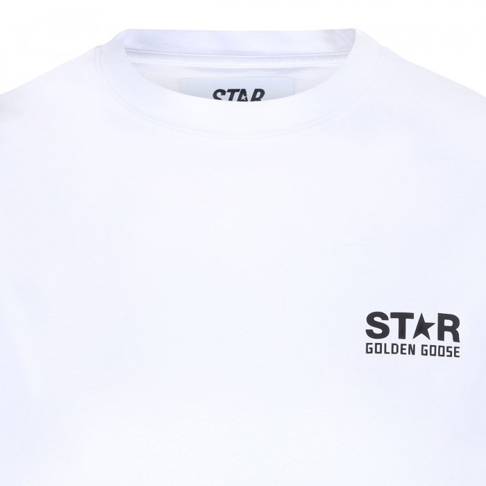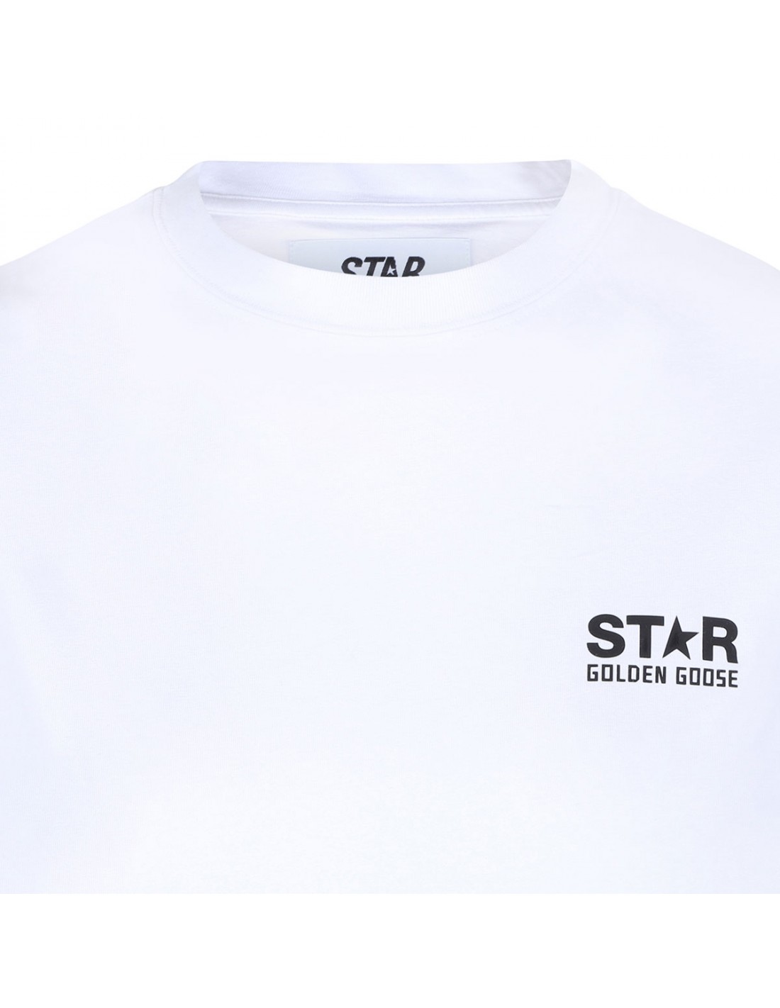 White cotton jersey T-shirt from Golden Goose featuring Star logo print on chest, black big star print on back, short sleeves, ribbed crew collar, regular fit.