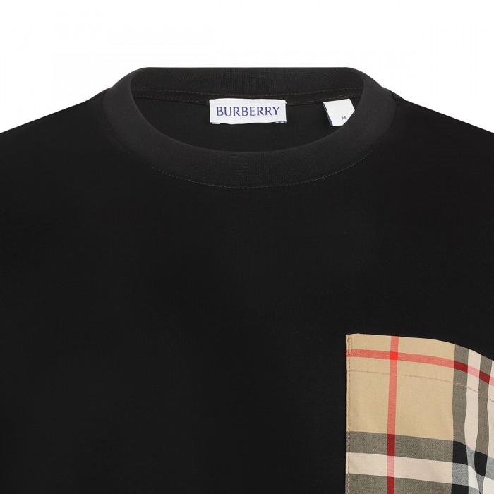 Black cotton jersey T-shirt from Burberry featuring contrasting signature check patch pocket, rib-knit crew neck, short sleeves, oversized silhouette.