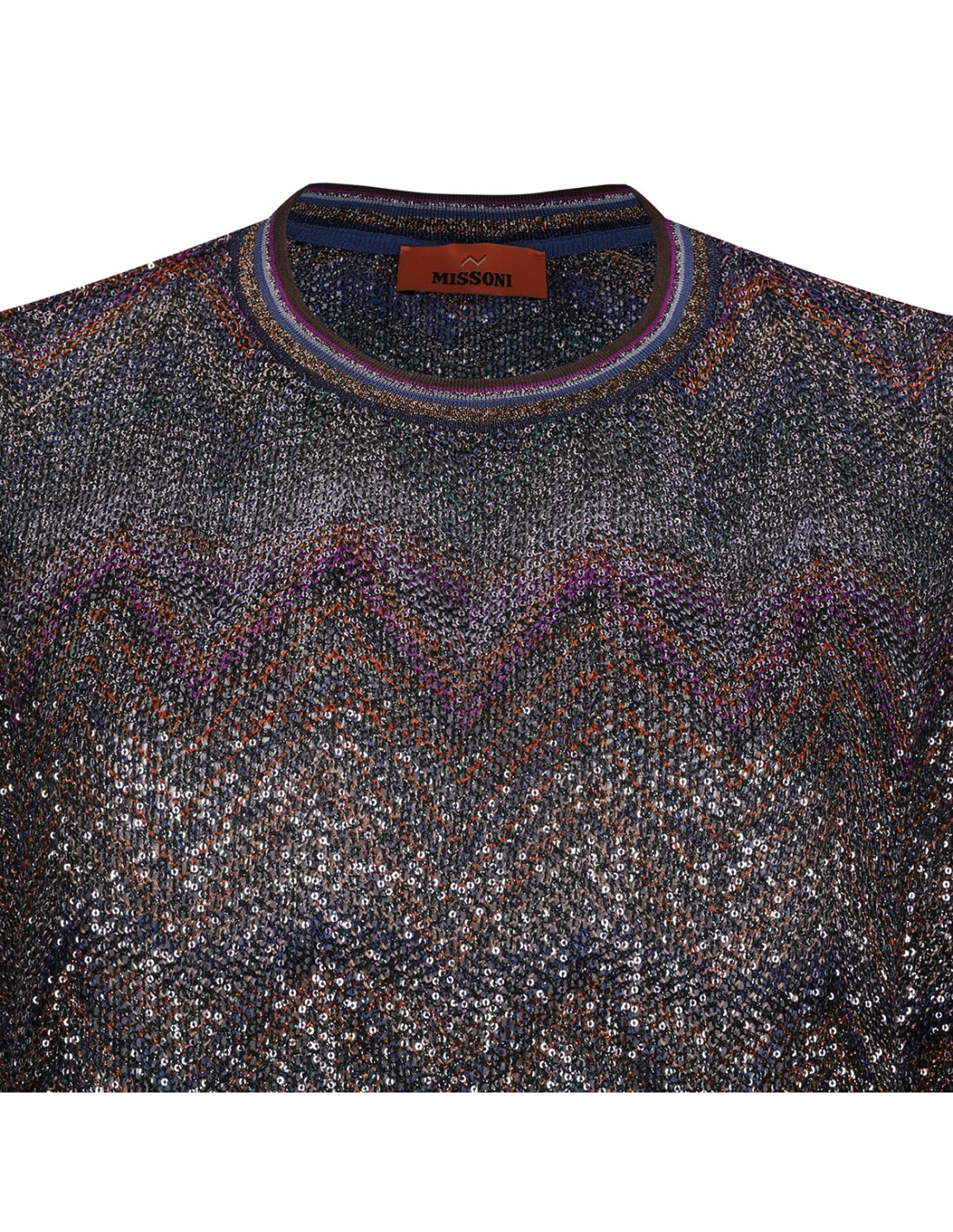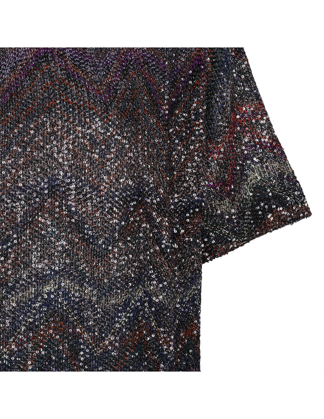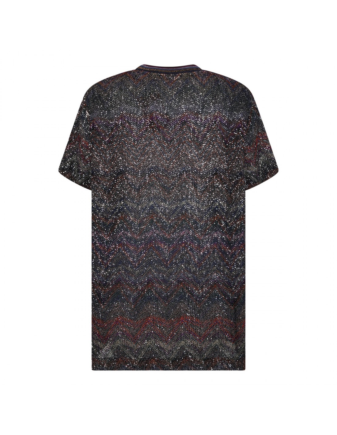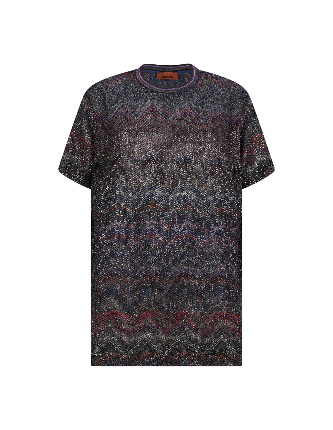 Multicolor viscose blend T-shirt from Missoni featuring iconic zigzag motif, lamé threads and sequins, Caperdoni loom knit, crew collar and short sleeves.