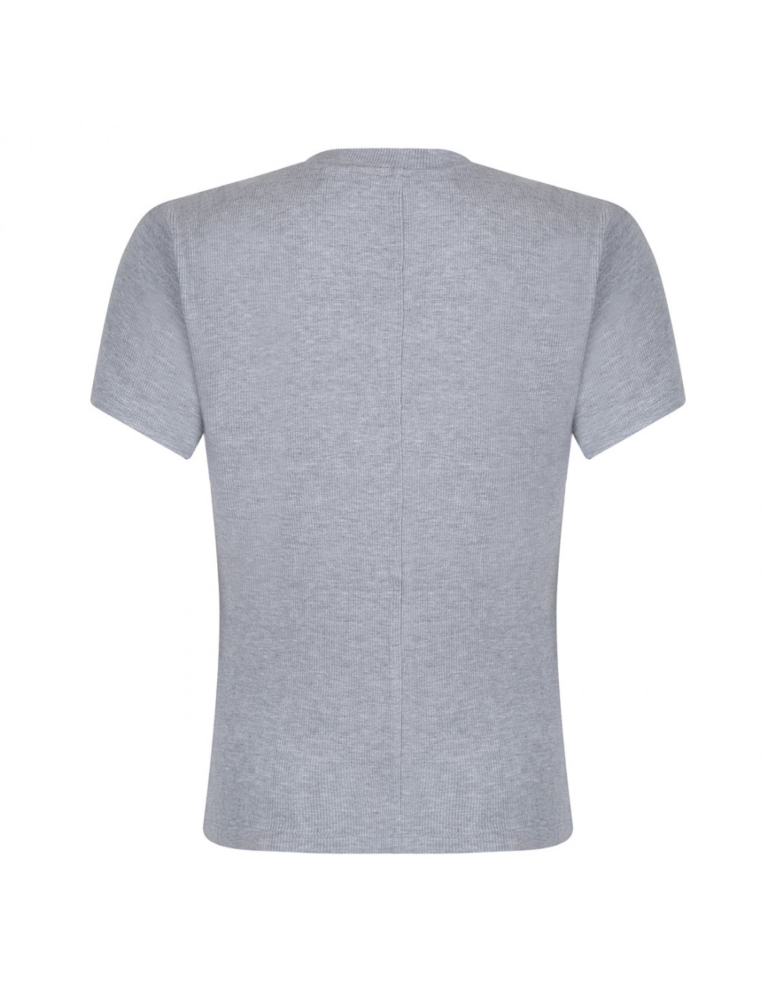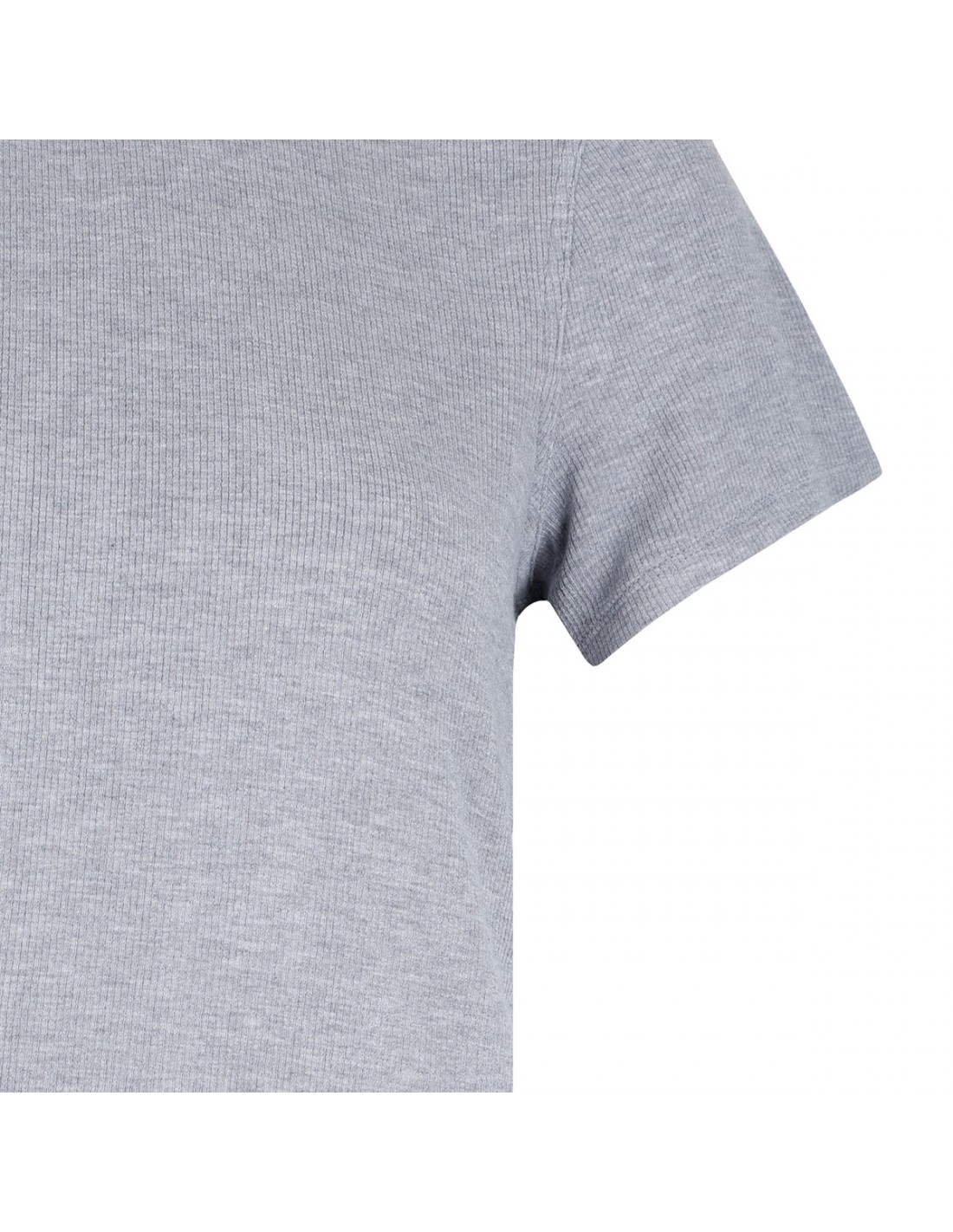 Gray soft and stretchy The Rib Baby Tee from Frame featuring ribbed trims, slightly shrunken fit, crew neck, short sleeves.