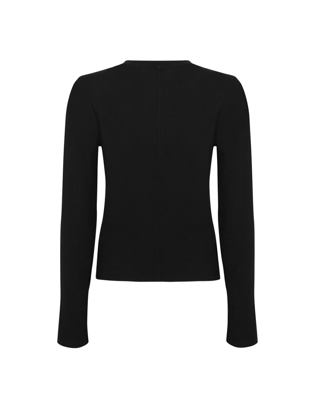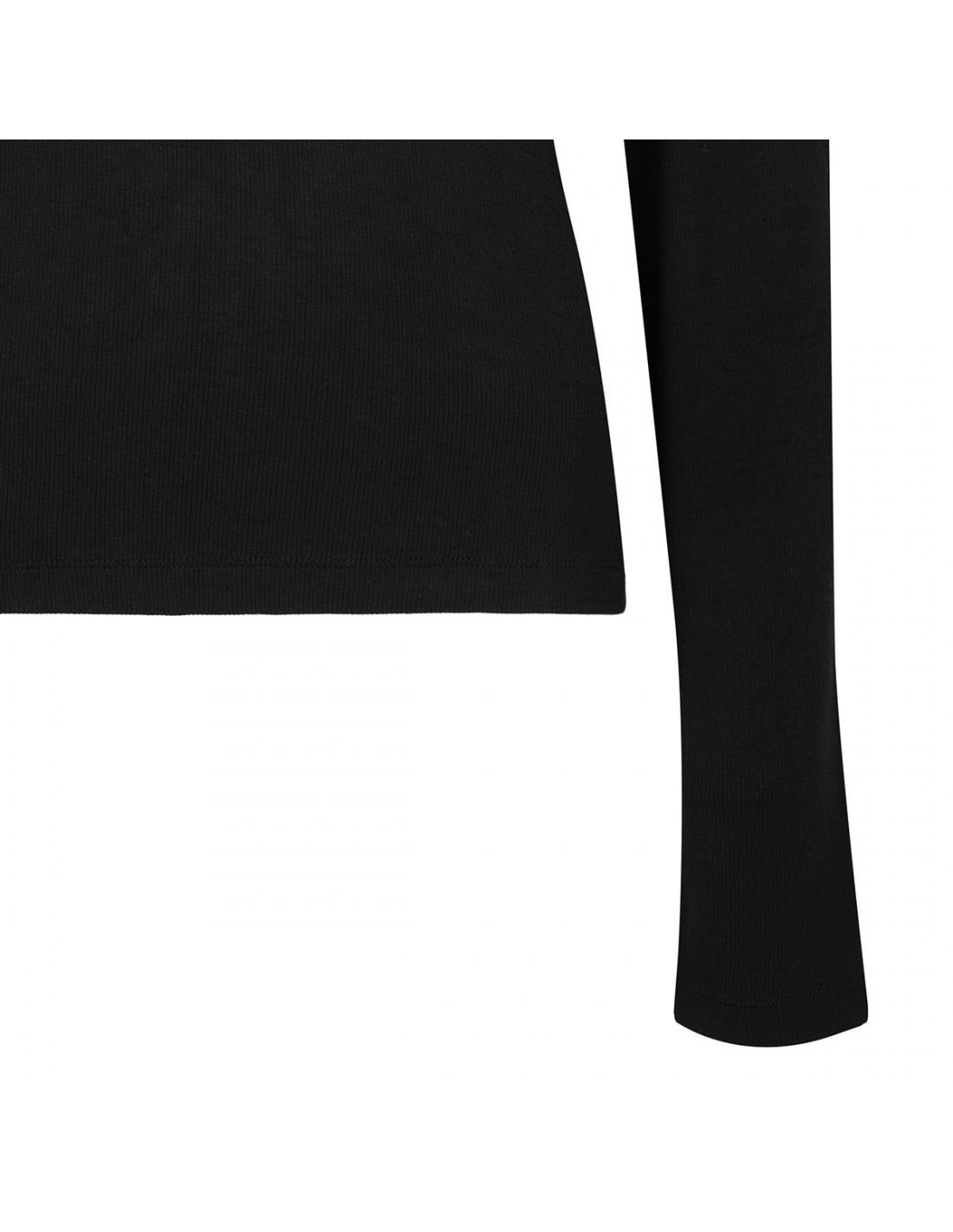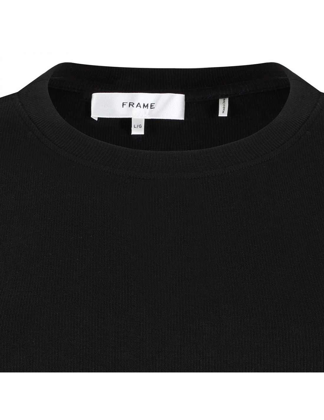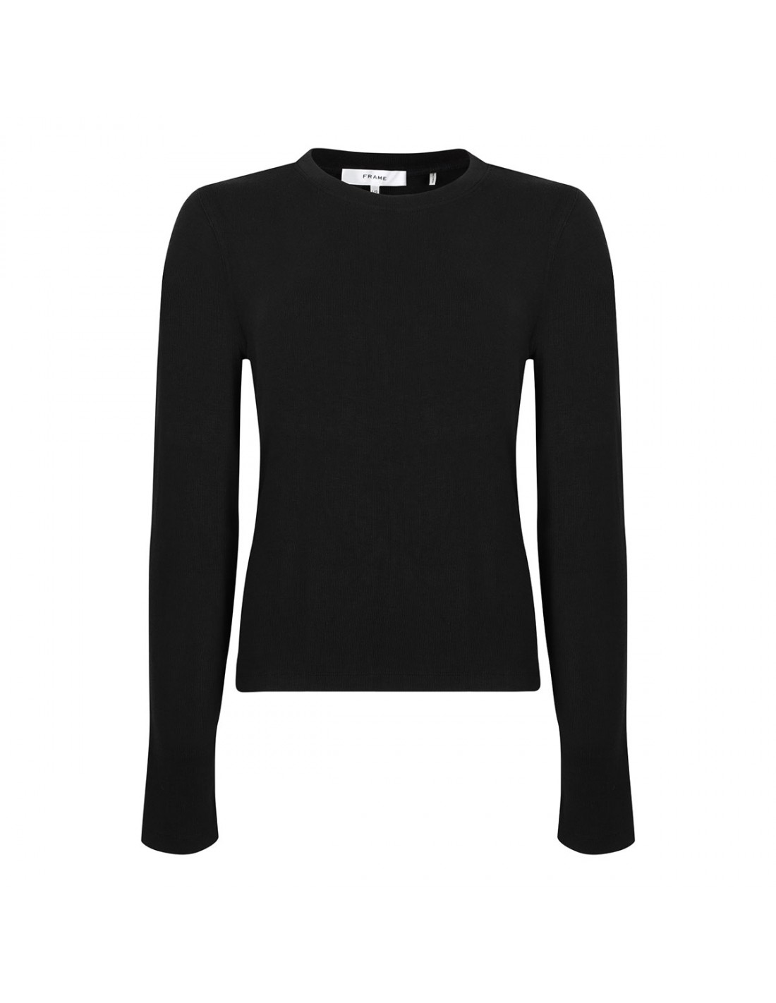 Black soft stretch-modal blend The Rib Crewneck Tee from Frame featuring fine ribbing, fitted silhouette, crewneck and long sleeves.