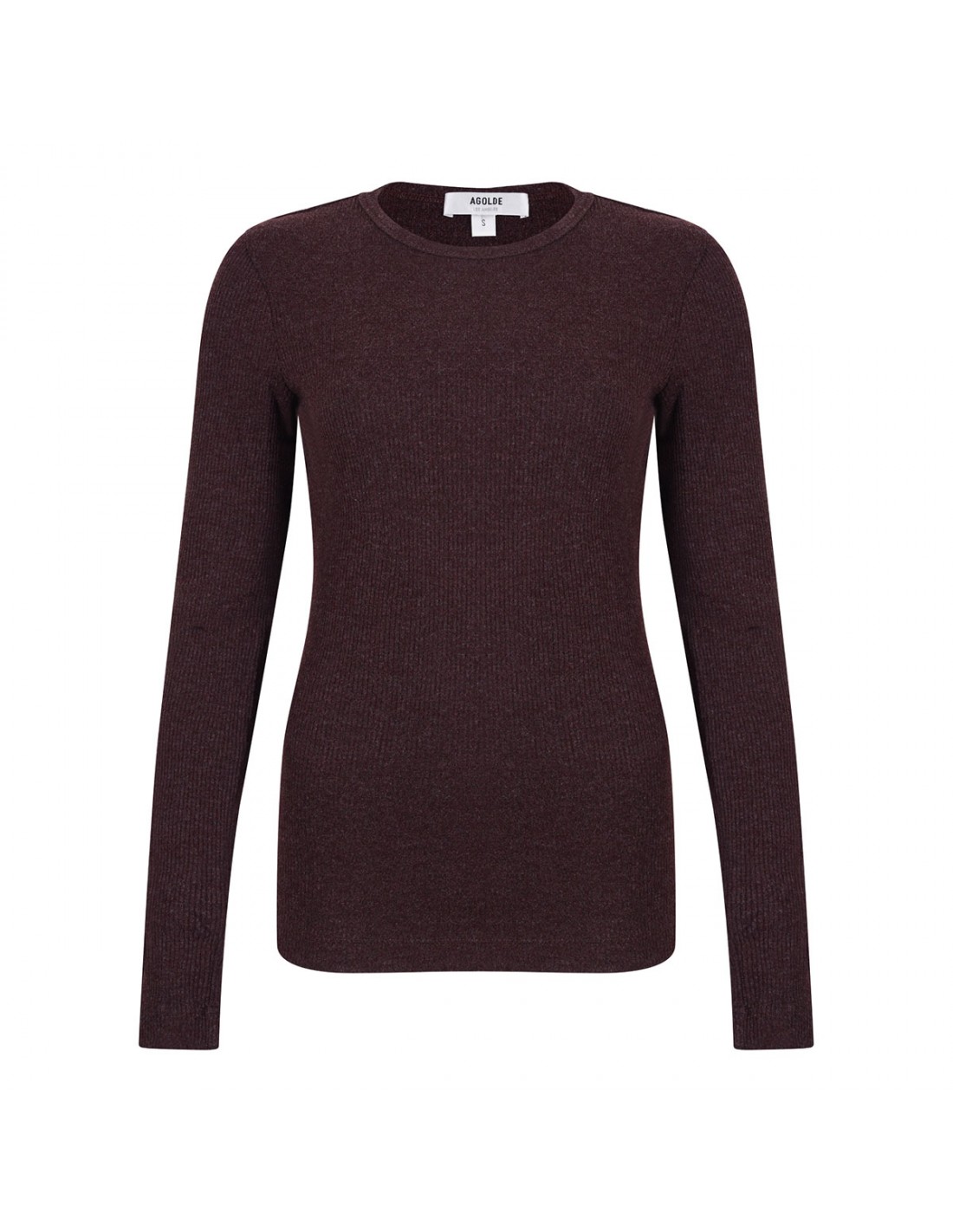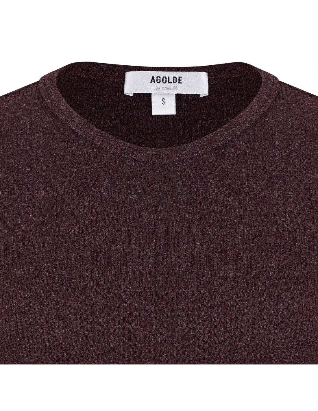 Dark dusty vintage rose-toned midweight fabric Delphi Tee from Agolde featuring fitted silhouette, long sleeves and crewneck.