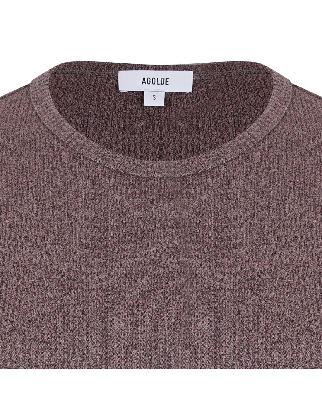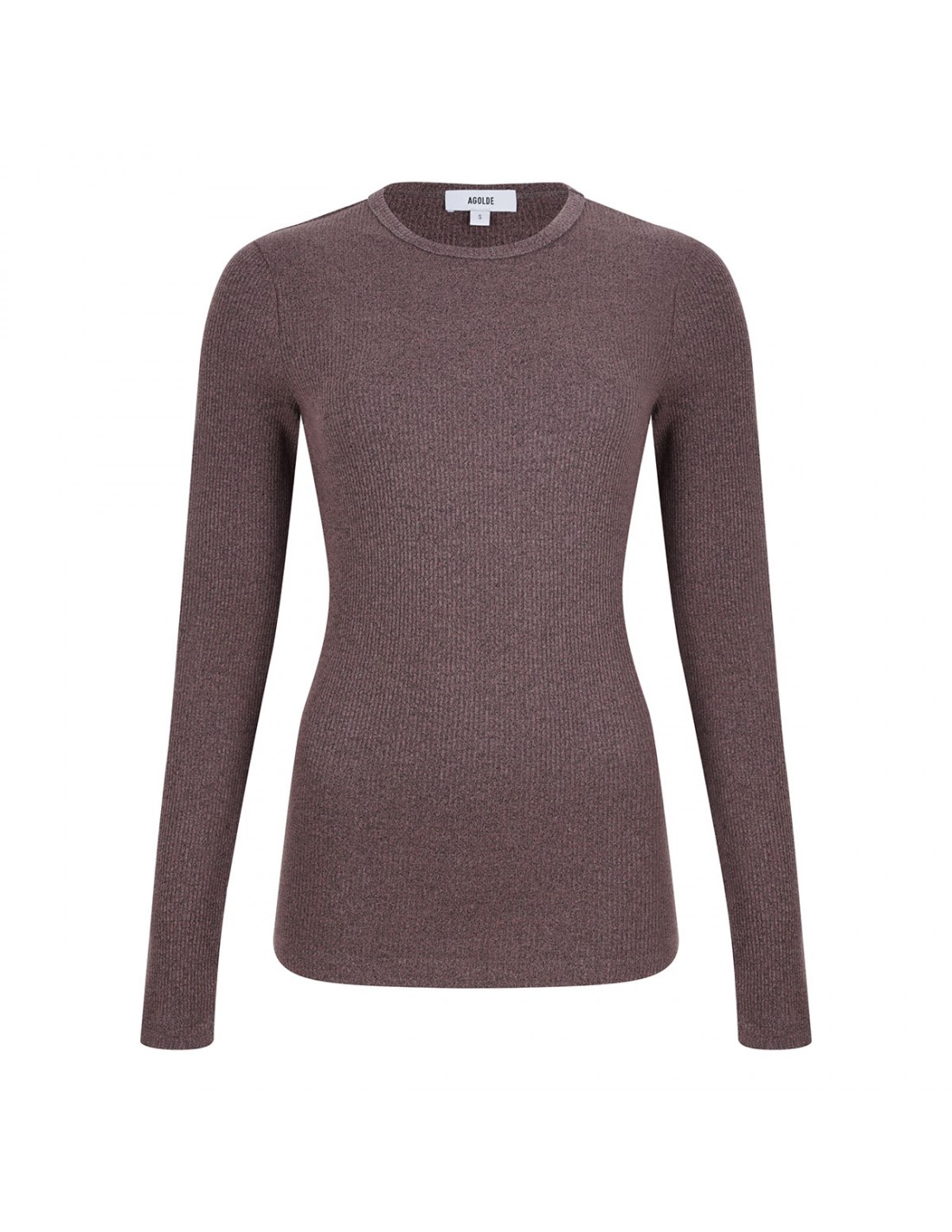 Dark brown and burgundy midweight fabric Delphi Tee from Agolde featuring fitted silhouette, long sleeves and crewneck.