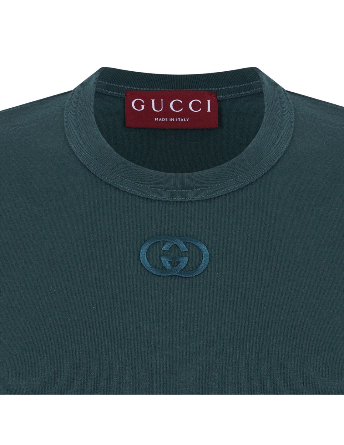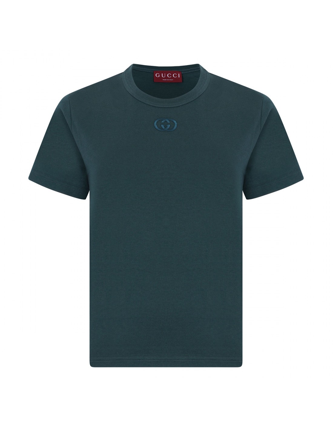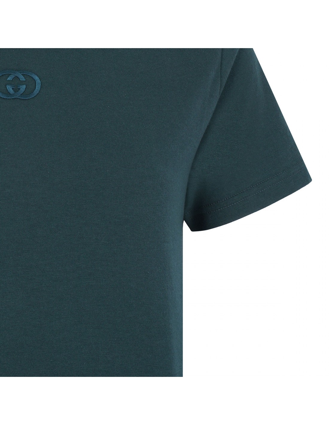 Dark green medium cotton jersey T-shirt from Gucci featuring interlocking G embroidery, crew ribbed neck, short sleeves. Inspired by ‘70s silhouettes.