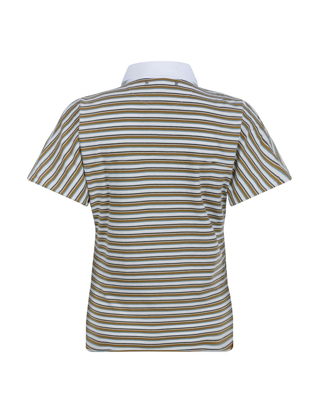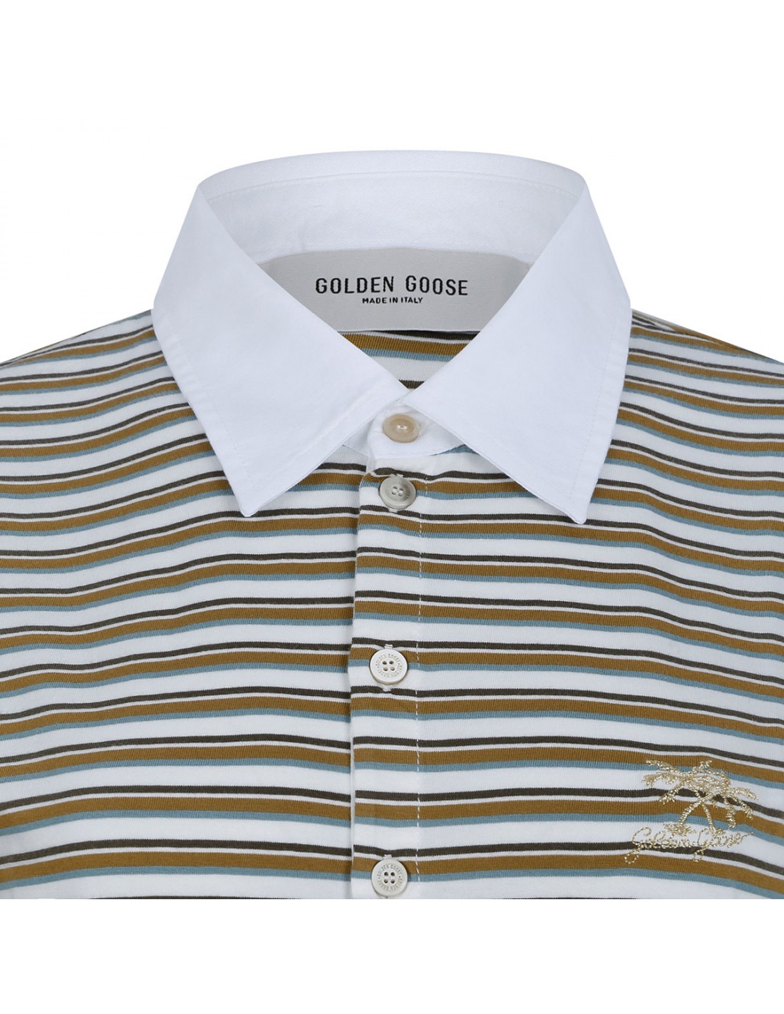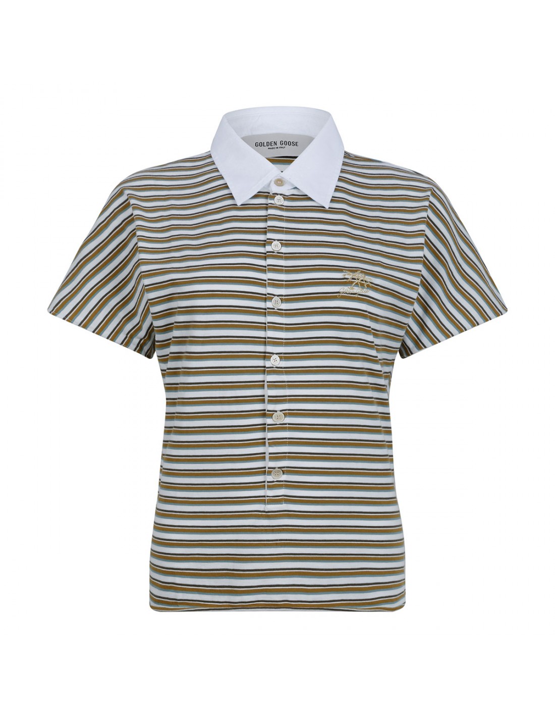 White and green cotton jersey polo T-shirt from Golden Goose featuring striped motif, white Oxford cotton pointed collar, short sleeves, logo embroidery on the chest, double star on the back, slim fit.