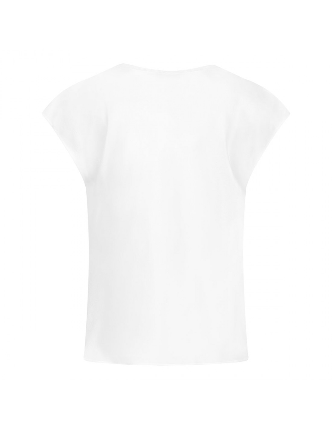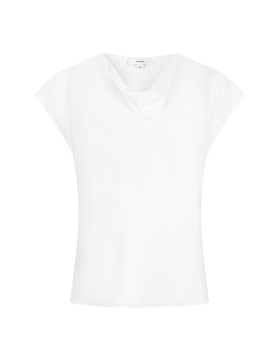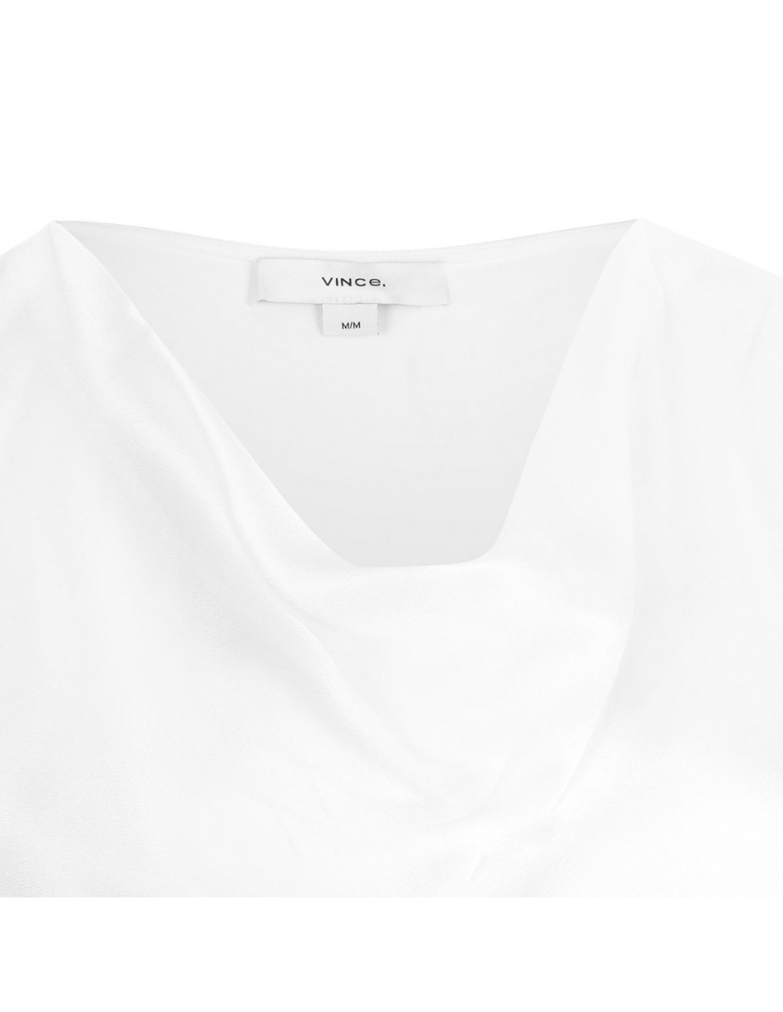 Off-white silk satin blouse from Vince featuring cowl-neckline and cape sleeves.