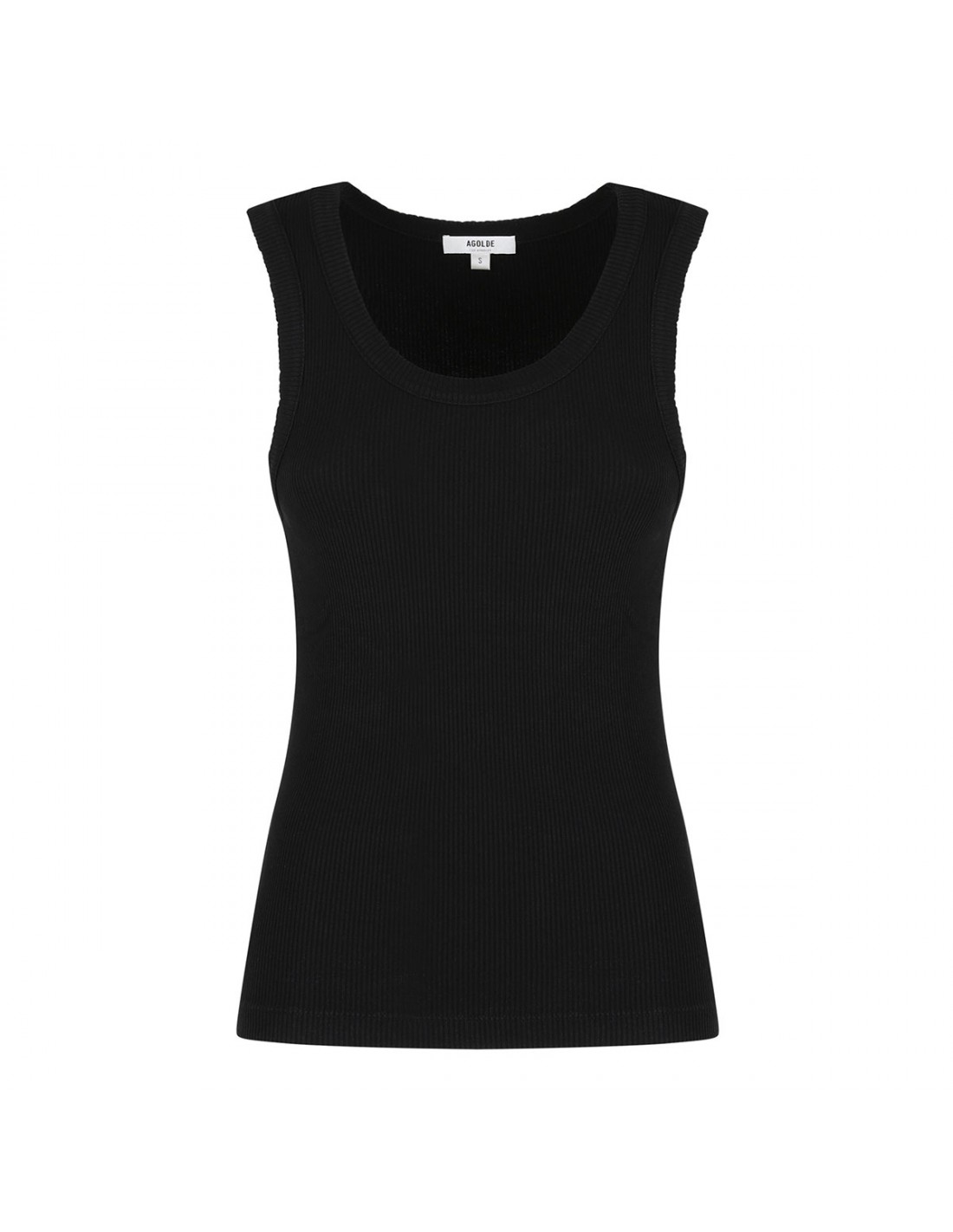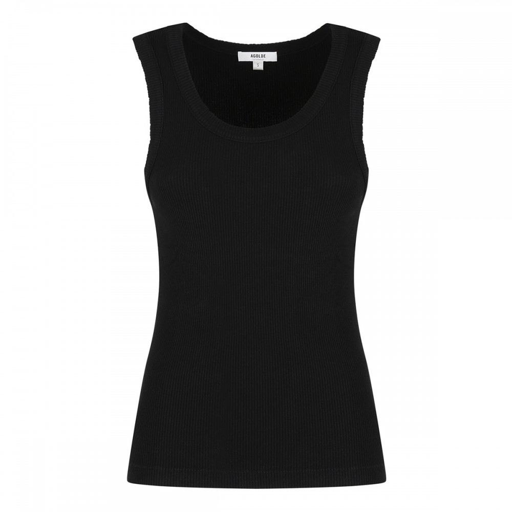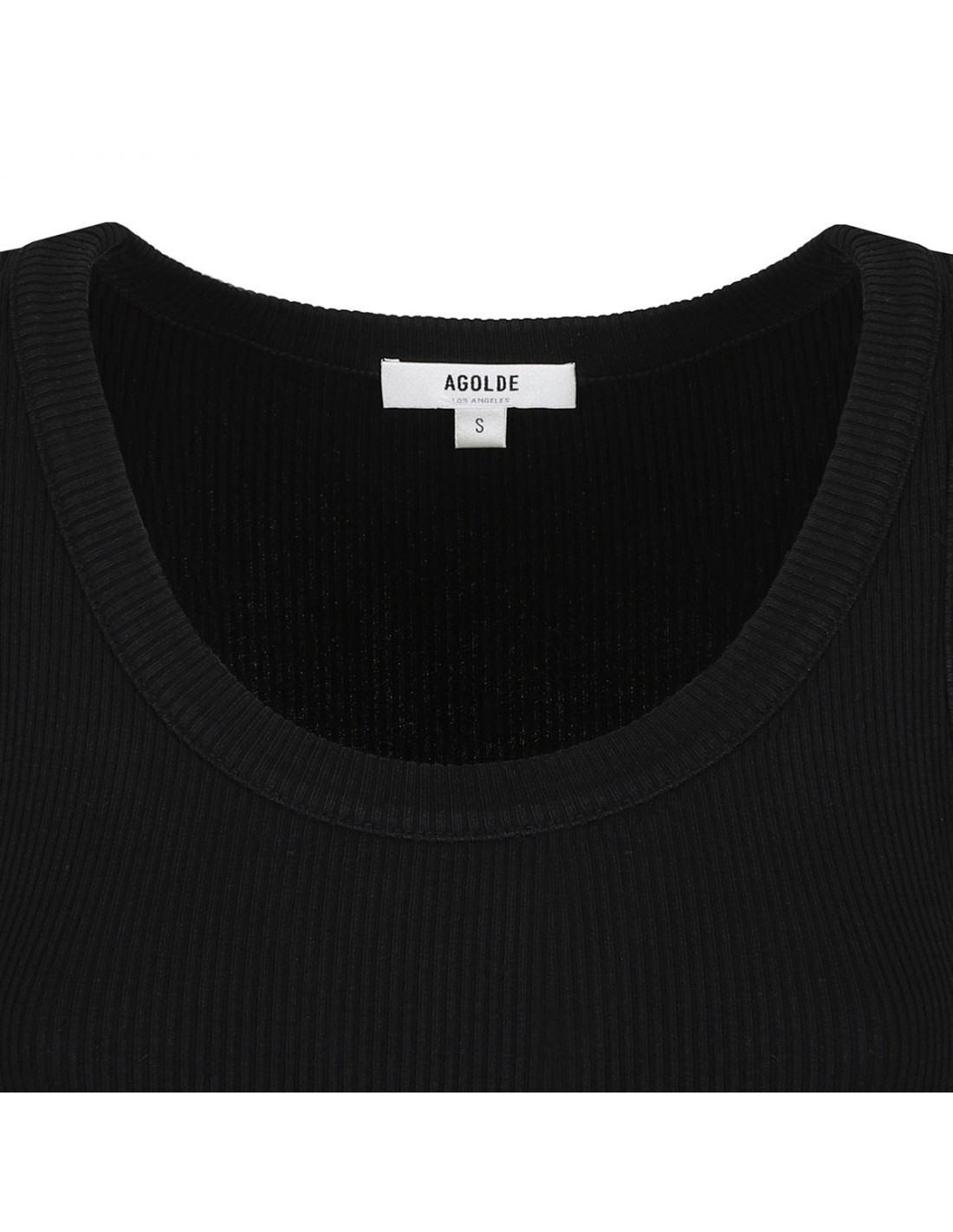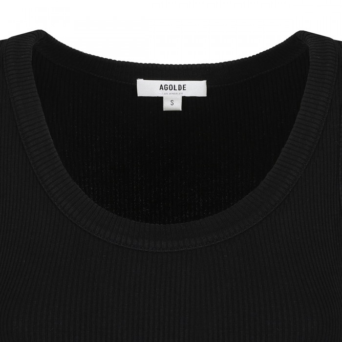 Black ultra-soft rib organic chunky cotton Poppy tank from Agolde featuring U-shape neckline, sleeveless silhouette, fitted silhouette.