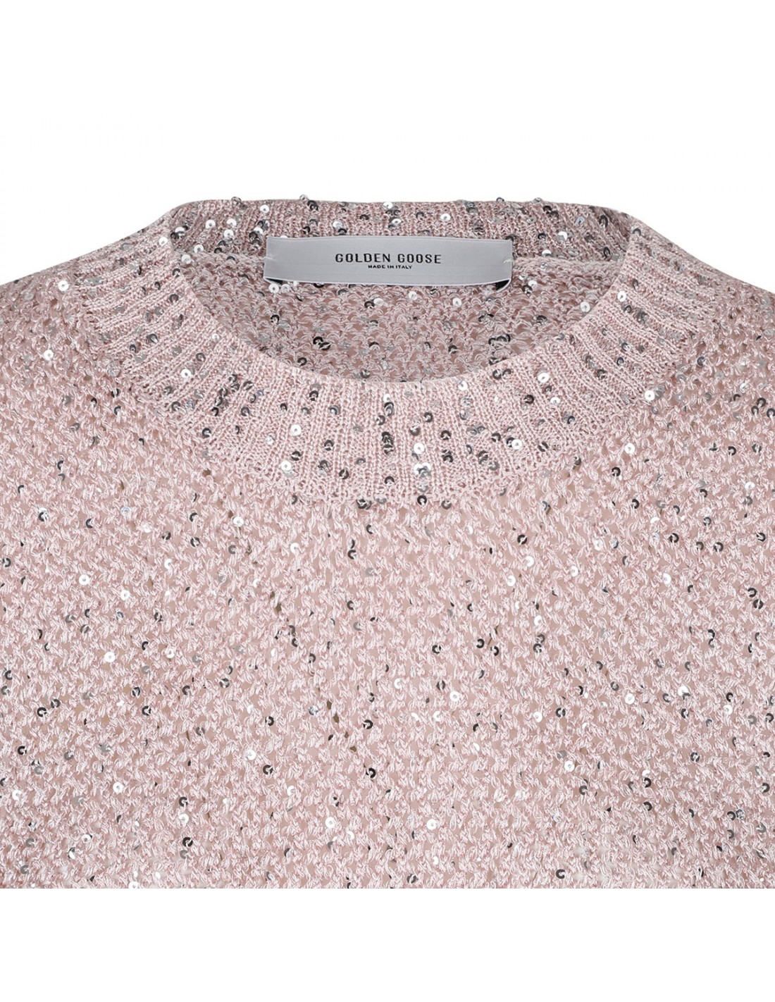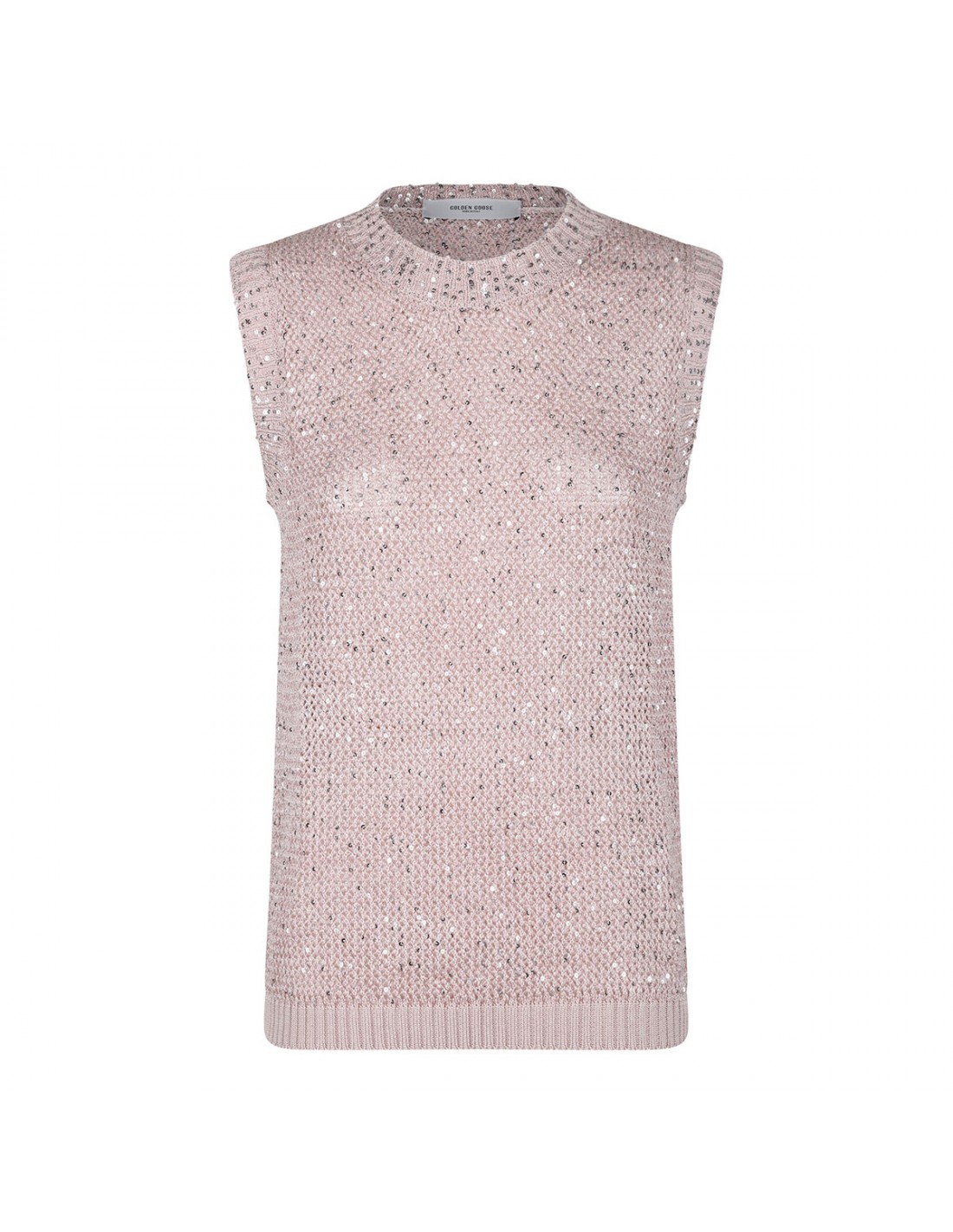 Shadow gray knit tank top from Golden Goose featuring sequins appliqué, crew collar, sleeveless silhouette and ribbed-knit trims.