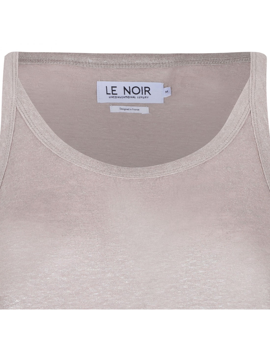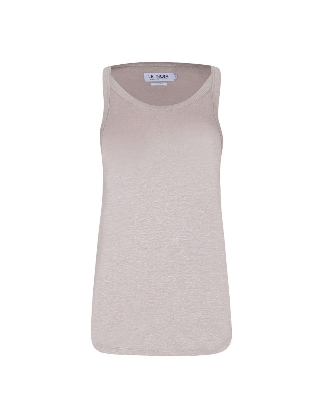 Natural-hue linen Mattea tank top from Le Noir featuring U-neck, sleeveless silhouette and rounded hem.