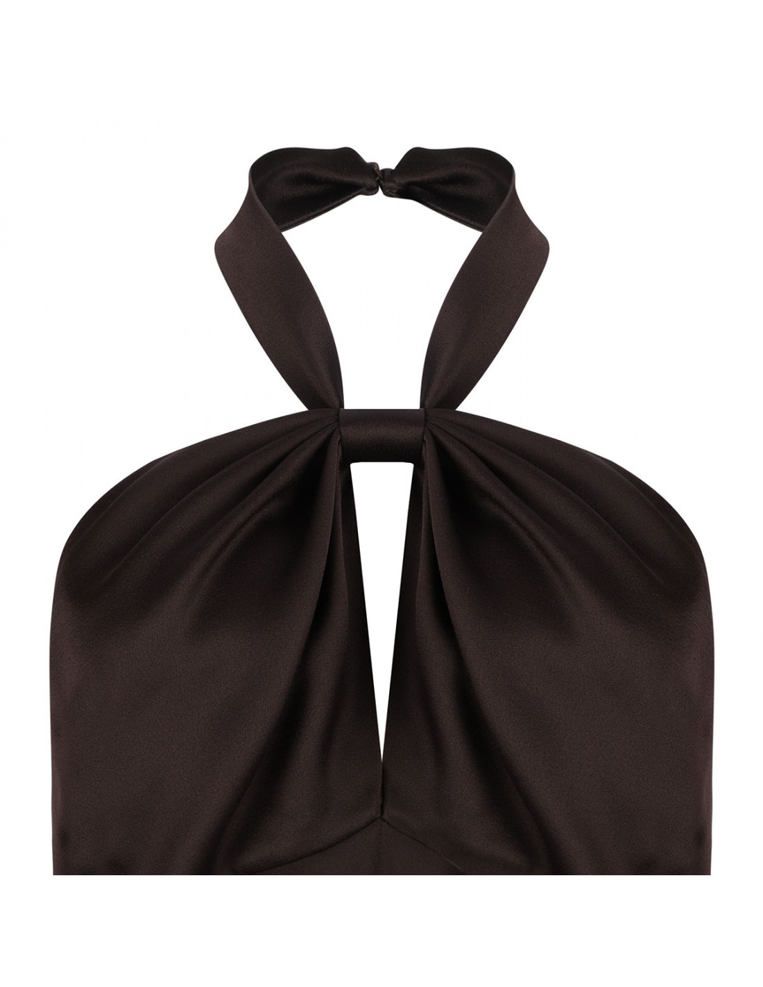 Deep brown fluid satin-crepe top from Tom Ford featuring knotting at halterneck, keyhole cutout, concealed hook and zip fastening at side.