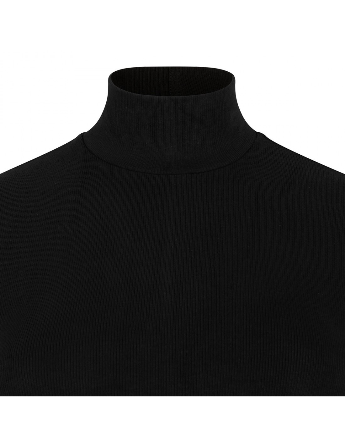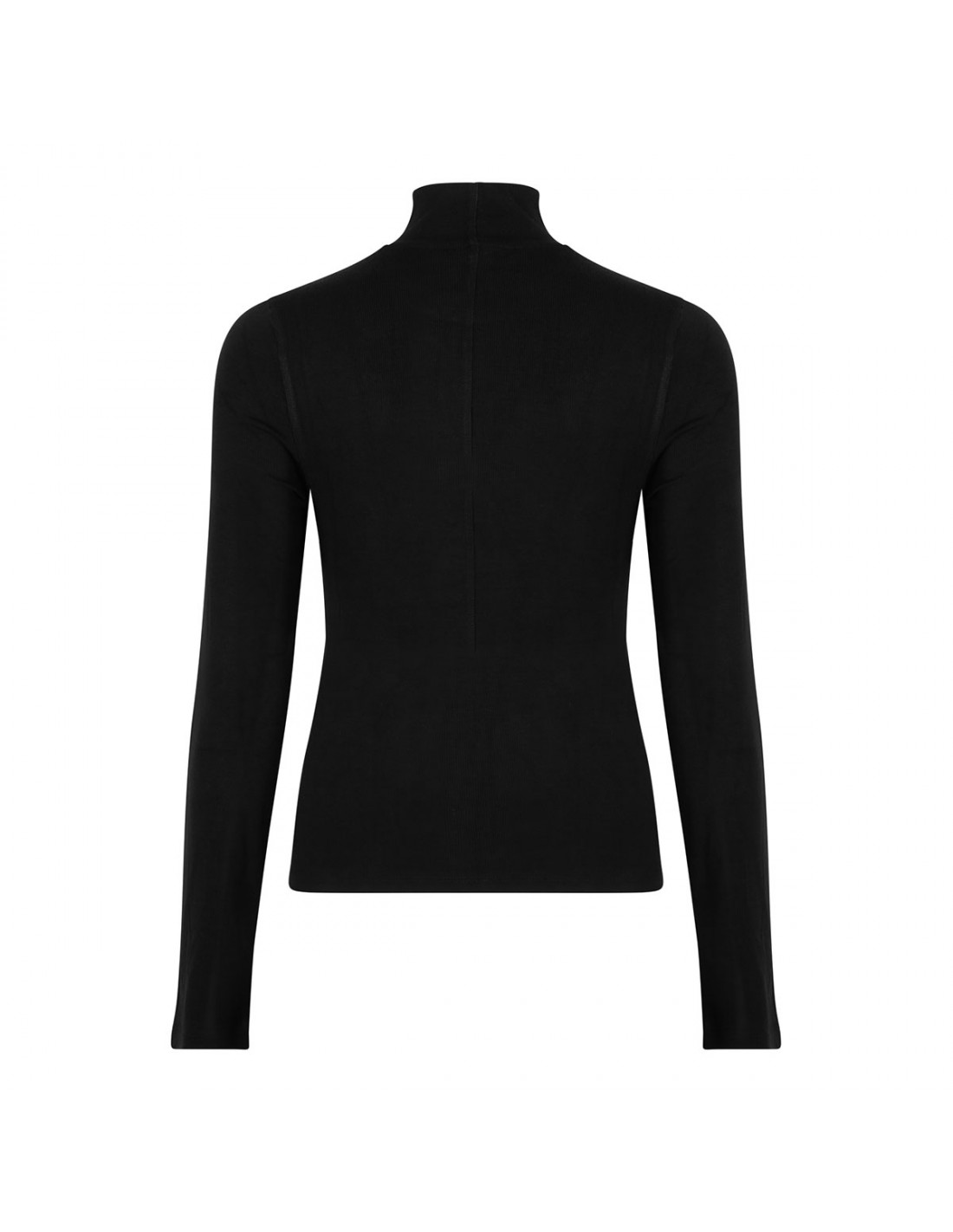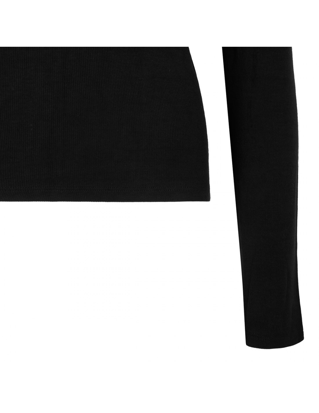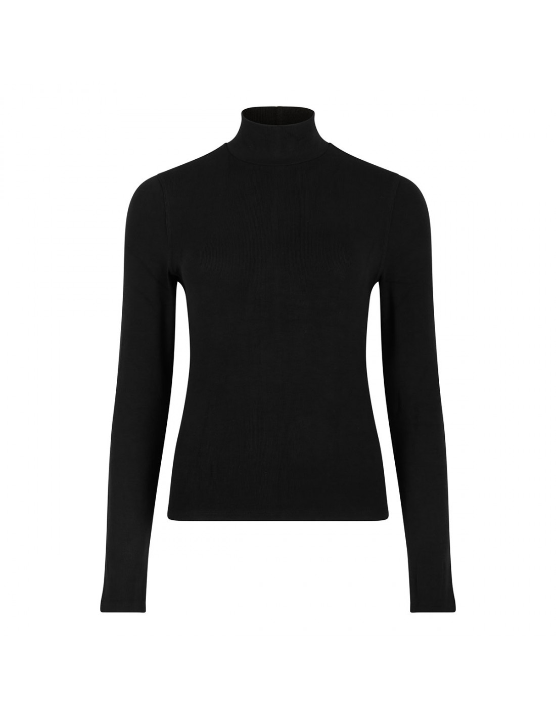 Black ribbed stretch modal top from Frame featuring fitted silhouette, turtleneck and long sleeves.