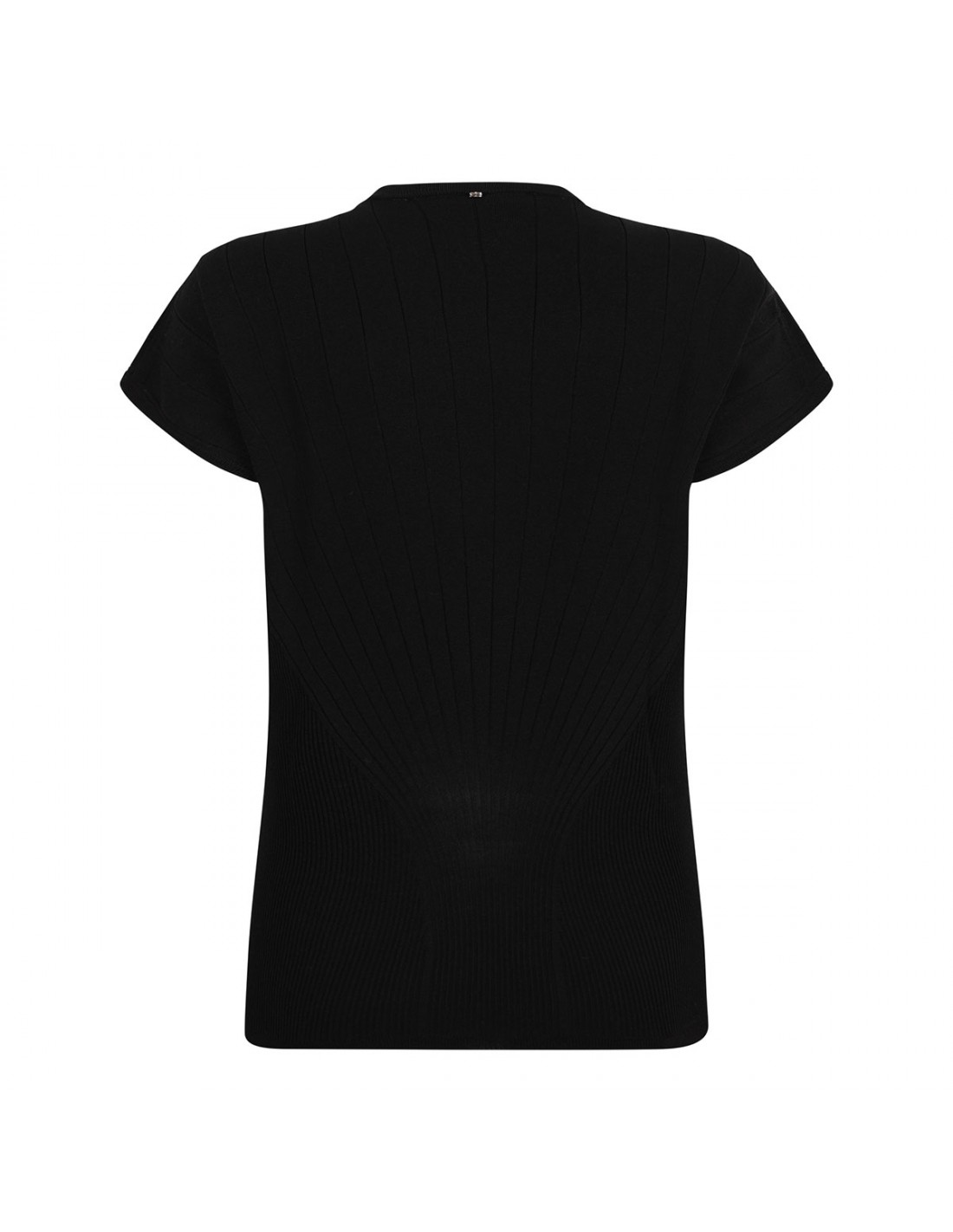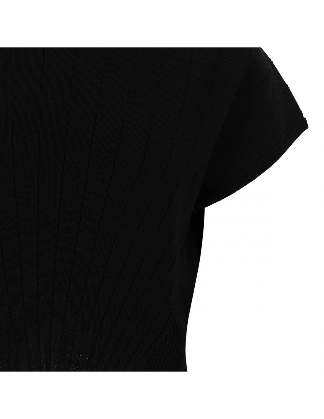 Black rib-knit stretch viscose blend Samba top from Sportmax featuring dropped shoulders, round neckline, fitted waist.