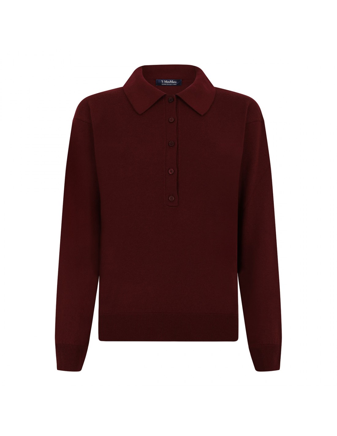 Lampone hue wool Frisia polo sweater from 'S Max Mara featuring polo collar, partially buttoned front, long sleeves and ribbed-knit edges.