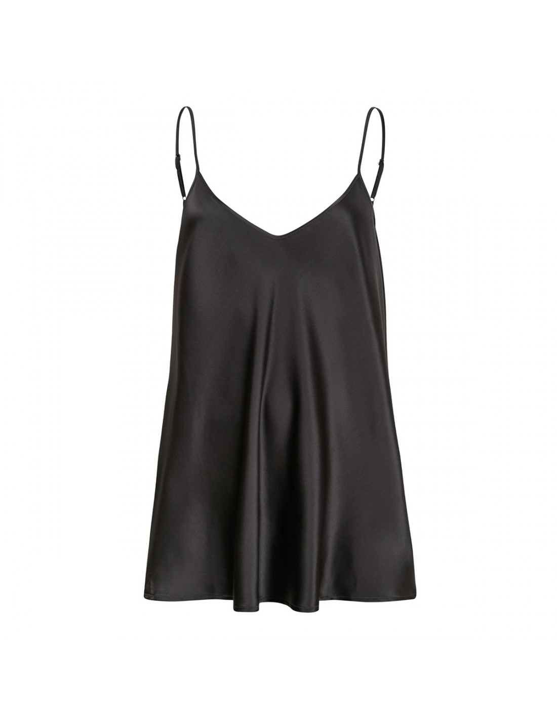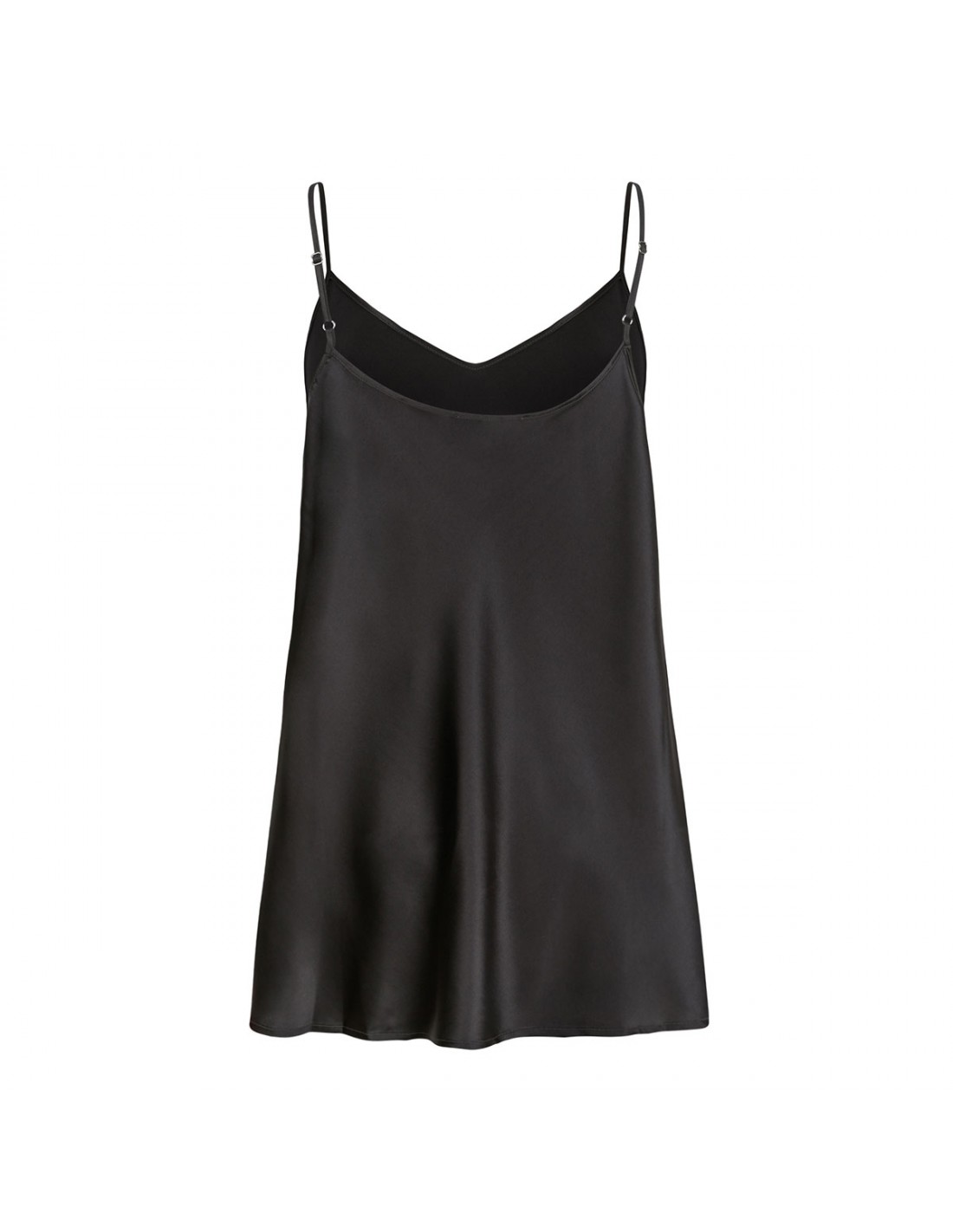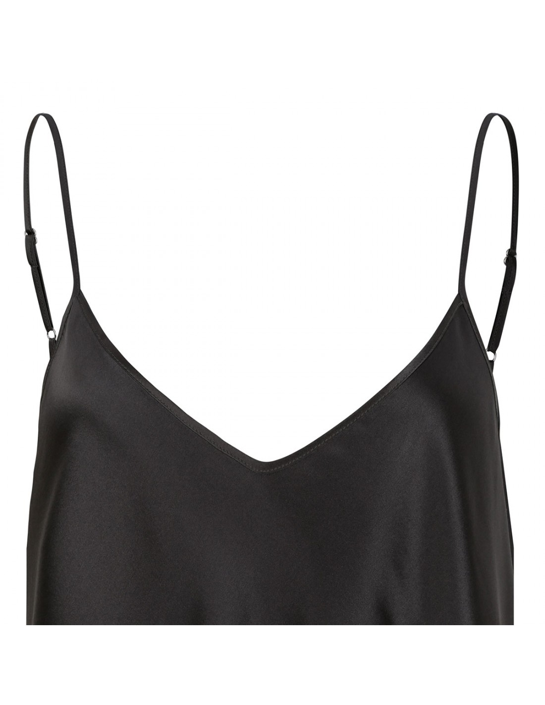 Slightly stretch silk tank top from Le Noir featuring adjustable spaghetti shoulder straps, V-neck, sleeveless style, relaxed silhouette.