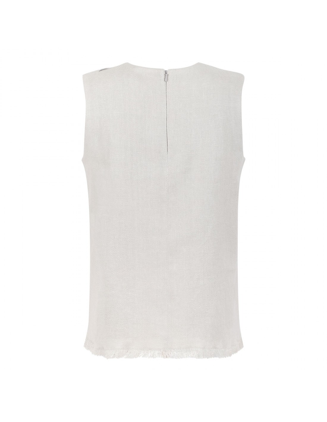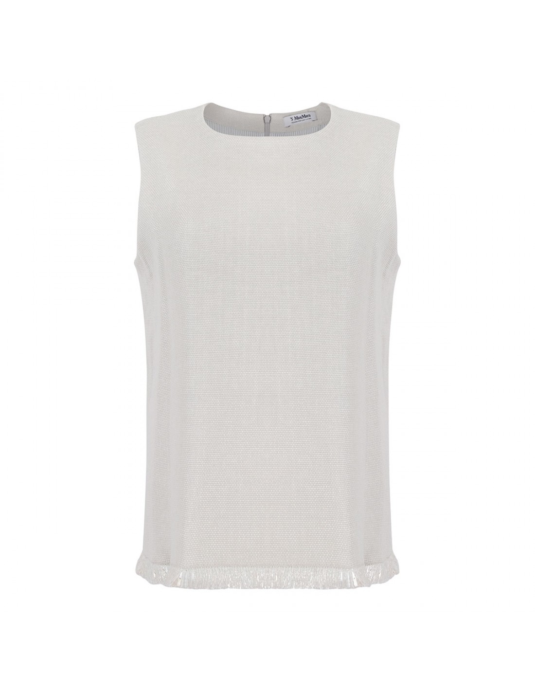 Ivory cotton and linen basketweave top from 'S Max Mara featuring slightly flared silhouette, crew-neck, wide shoulder straps, zip fastening at back.